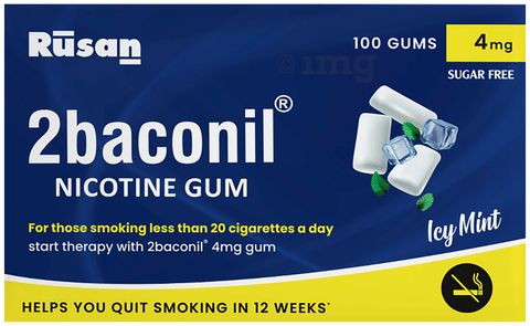 2baconil Nicotine Gum is a scientifically advanced Nicotine Replacement Therapy (NRT) designed to assist individuals in their journey to quit smoking or chewing tobacco. Formulated as a sugar-free, medicated chewing gum, it provides a controlled release of medicinal nicotine into the bloodstream through the buccal mucosa (the lining of the mouth). This method effectively bypasses the harmful tar, carbon monoxide, and thousands of carcinogenic toxins found in cigarette smoke. The Icy Mint flavor is specifically developed to provide a refreshing, cooling sensation that helps mask the distinct taste of nicotine, making the cessation process more pleasant and manageable for the user.