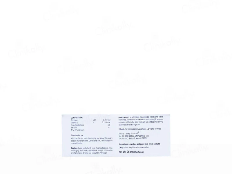 Accare Soap is a medicated cleansing bar formulated to help manage skin conditions such as acne, pimples, oiliness, and bacterial buildup. Designed with skin-friendly and therapeutic ingredients, it helps cleanse the skin deeply, reduce excess sebum, and support clearer, healthier-looking skin. Accare Soap is suitable for regular use as directed and is ideal for those looking to improve skin hygiene while targeting minor breakouts and oily skin concerns.