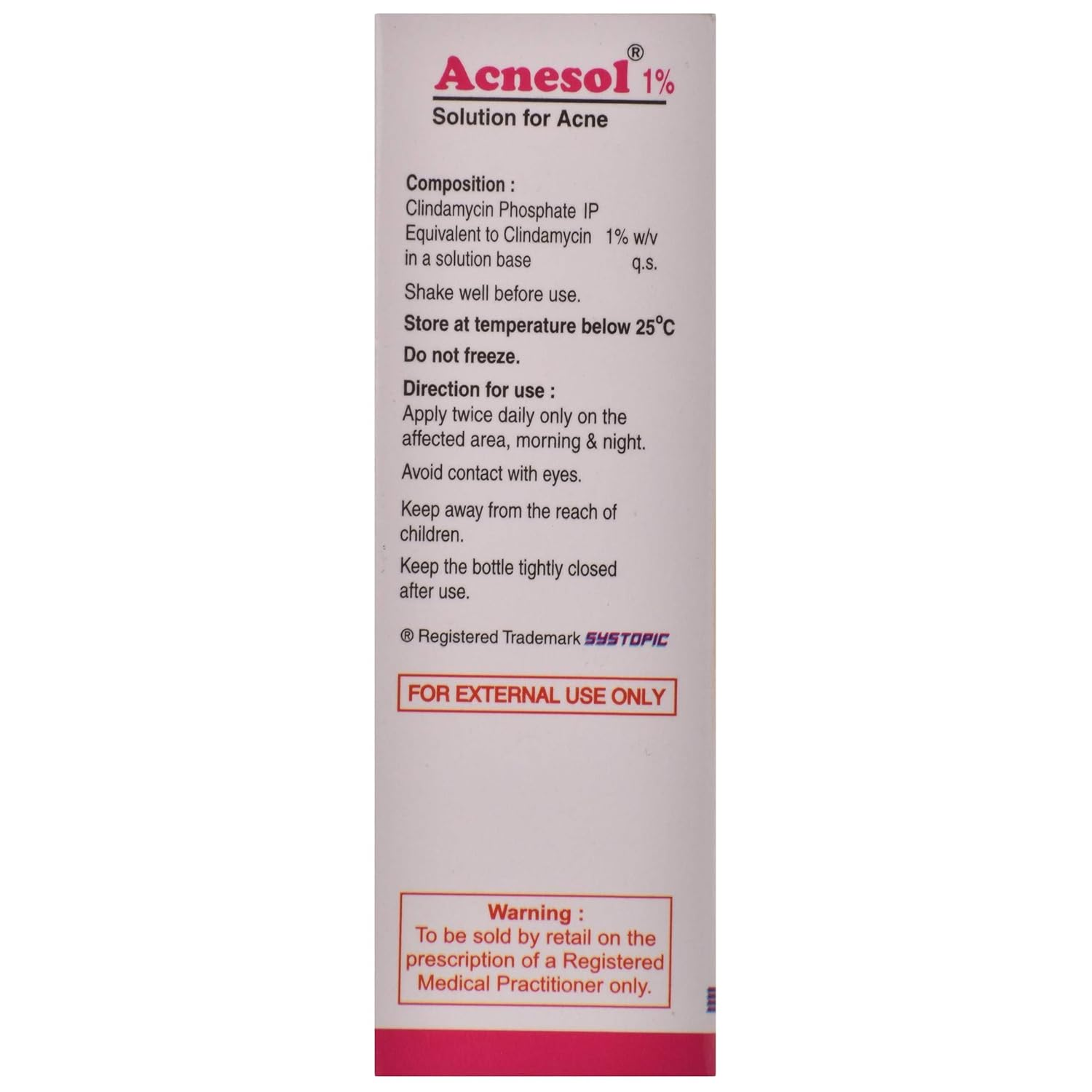 Acnesol Solution is a potent topical antibiotic treatment specifically formulated for the management of acne vulgaris, particularly in individuals with very oily skin. Unlike creams or gels, this liquid solution contains Clindamycin Phosphate in an aqueous-alcoholic base, which provides superior penetration into the pores and a refreshing, astringent effect upon application. It is primarily used to treat inflammatory acne, characterized by the presence of red, painful bumps, pustules, and cysts. By targeting the biological roots of acne, Acnesol Solution helps clear existing infections and prevents the spread of bacteria across the skin’s surface.