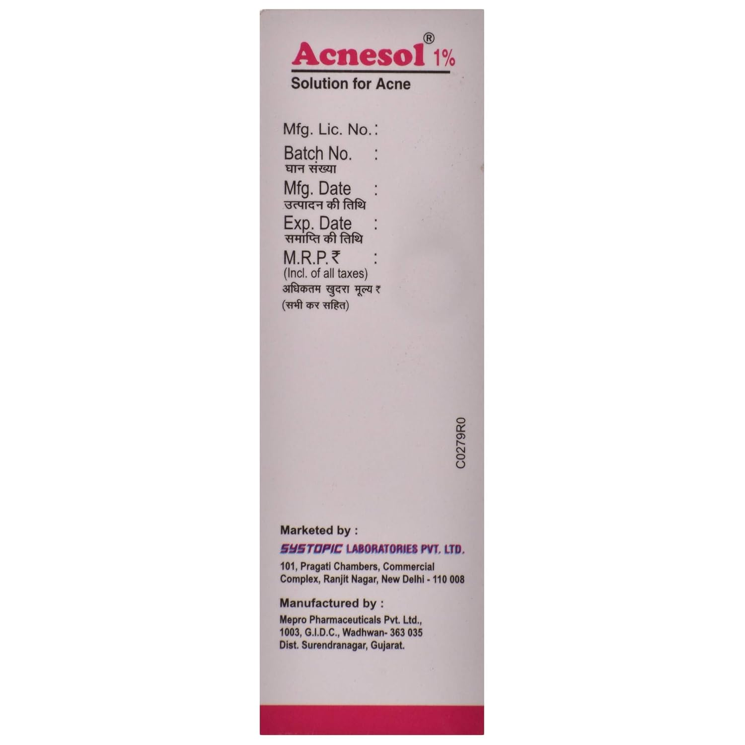 - Tilt the bottle or use a clean cotton pad to apply a thin layer of Acnesol Solution to the entire affected area—not just the individual pimples. It is generally recommended to apply the solution twice daily, in the morning and at night.
