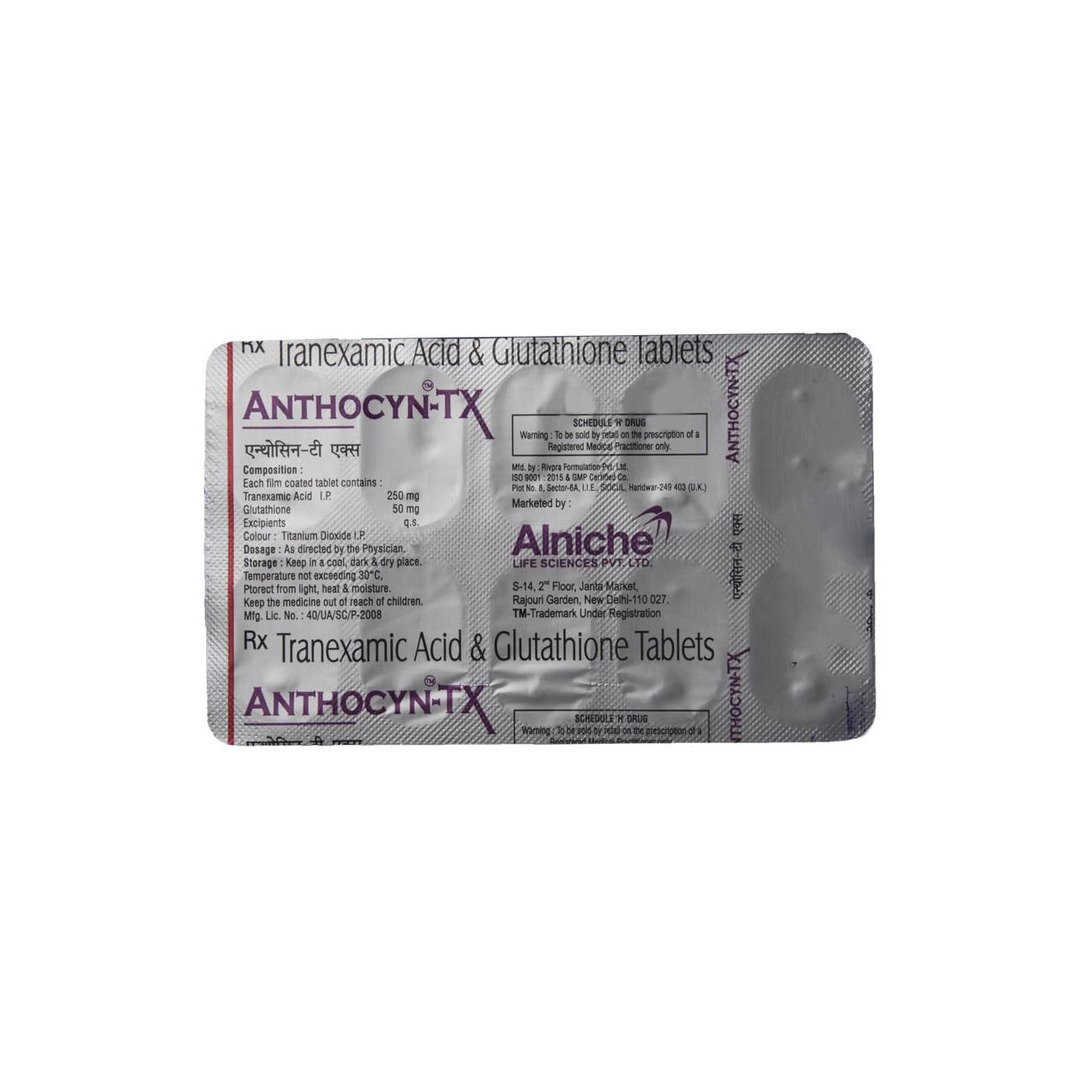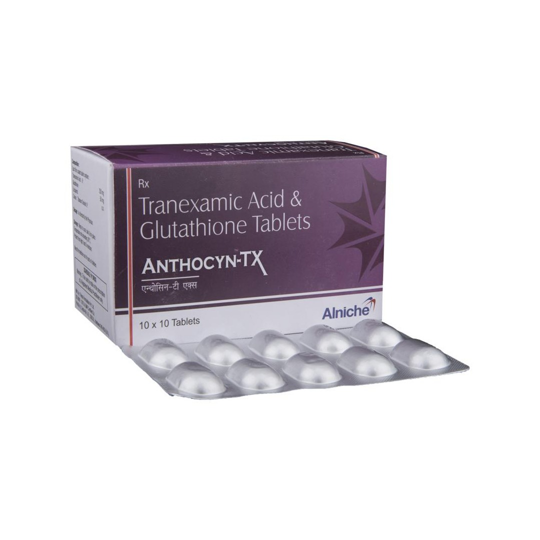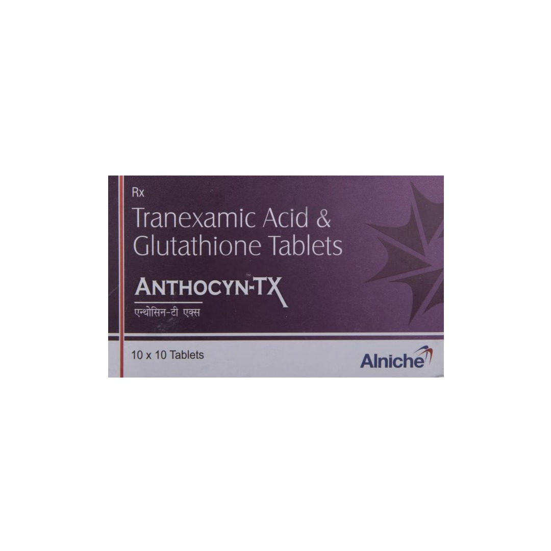 Anthocyn-TX Tablet is a health supplement formulated to support skin health and help manage pigmentation-related concerns. It contains a combination of antioxidants and supportive nutrients that help reduce oxidative stress, support even skin tone, and promote overall skin wellness when used as directed.
