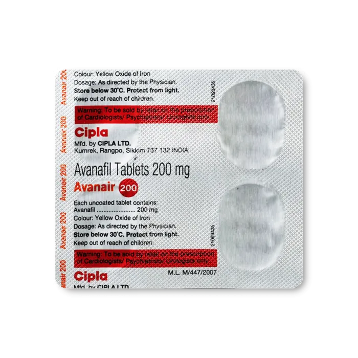 Avanair 200 mg Tablet is an advanced pharmaceutical treatment containing Avanafil, a second-generation PDE5 inhibitor used to treat erectile dysfunction (ED) in men. Avanair works by increasing blood flow to the penile region during sexual stimulation, helping to achieve and maintain an erection firm enough for sexual activity. What sets Avanair apart is its rapid onset of action, often working significantly faster than older medications in its class. It specifically targets the enzyme responsible for blood flow regulation without affecting other systemic functions, providing a more selective and efficient response. This medication does not increase sexual desire and only works in the presence of natural sexual stimulation.