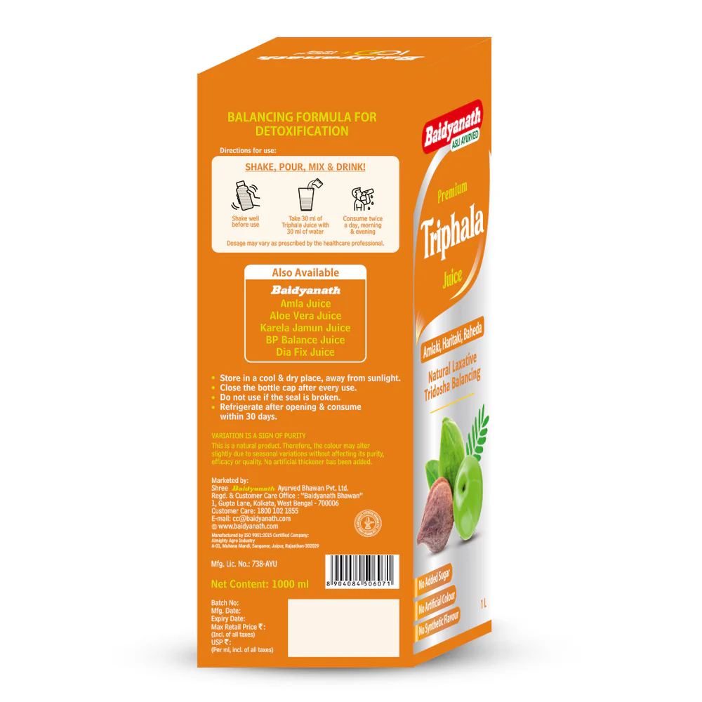 Triphala Juice is a classical Ayurvedic formulation made from a blend of three fruits—Amla, Haritaki, and Bibhitaki. It is traditionally used to support digestive health, promote regular bowel movements, aid gentle detoxification, and support overall wellness when consumed regularly as advised.