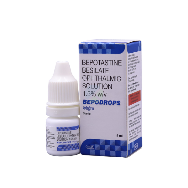Bepodrops Ophthalmic Solution is a highly effective, fast-acting prescription eye drop containing Bepotastine Besilate. It is specifically formulated to combat the symptoms of allergic conjunctivitis, a condition where the eyes react to environmental triggers such as pollen, dust, pet dander, or mold. These allergens cause the eyes to become red, watery, and intensely itchy, often interfering with daily activities and visual comfort. Bepodrops acts as a sophisticated shield, providing rapid relief from ocular itching and helping to stabilize the surface of the eye. Its advanced formulation is designed for high ocular comfort, making it a reliable choice for individuals who suffer from seasonal or perennial allergies and require a potent yet gentle solution.