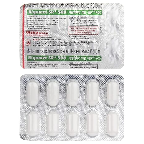 Bigomet SR 500 Tablet is an antidiabetic medicine containing metformin. It is used to control high blood sugar levels in people with type 2 diabetes mellitus when diet and exercise alone are not sufficient. The sustained-release formulation helps maintain stable blood glucose levels throughout the day. It may also be prescribed for women with polycystic ovary syndrome (PCOS) to improve insulin sensitivity.