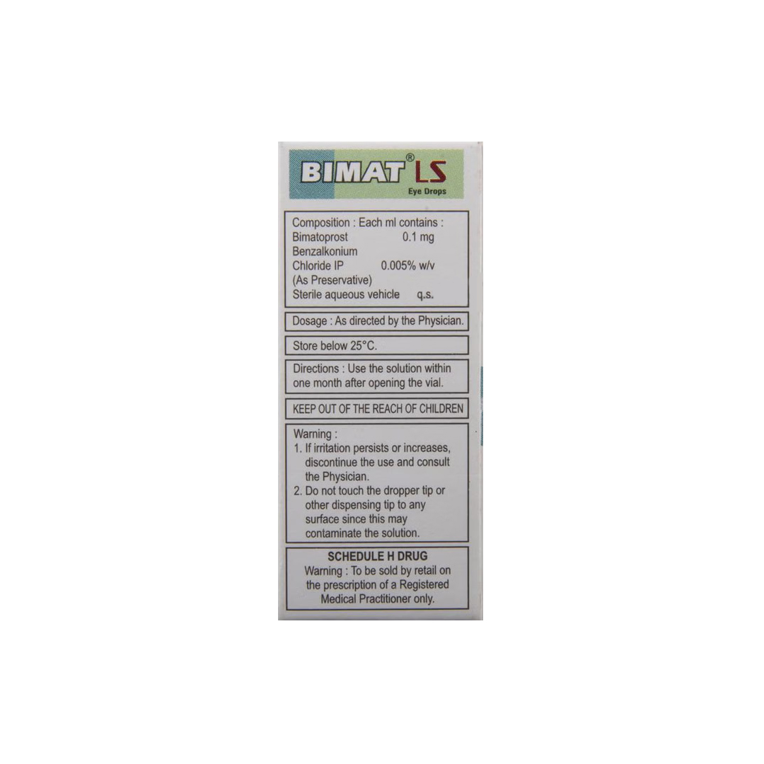 Bimat LS (Bimatoprost 0.01%) is a low-strength ophthalmic solution primarily used to reduce elevated intraocular pressure (IOP) in patients with open-angle glaucoma or ocular hypertension. As a synthetic prostaglandin analog, it works by increasing the natural outflow of aqueous humor (the fluid inside the eye) through the uveoscleral pathway. The “LS” (Low Strength) formulation is specifically designed to provide effective pressure control while significantly reducing common side effects like eye redness and irritation that are often associated with higher concentrations. By maintaining stable internal eye pressure, Bimat LS helps prevent damage to the optic nerve and preserves long-term vision in chronic ocular conditions.