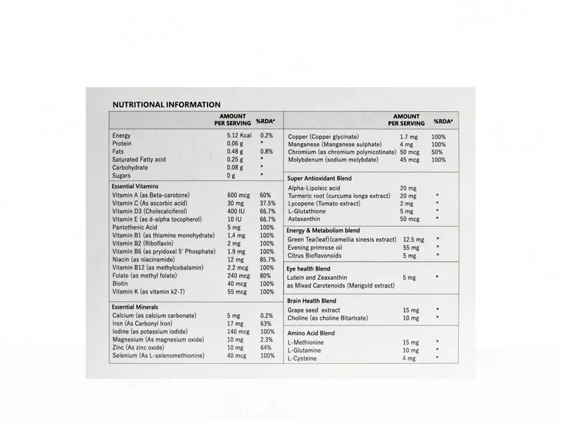 - Avoid taking the capsule on an empty stomach to prevent potential nausea associated with high-potency multivitamins.