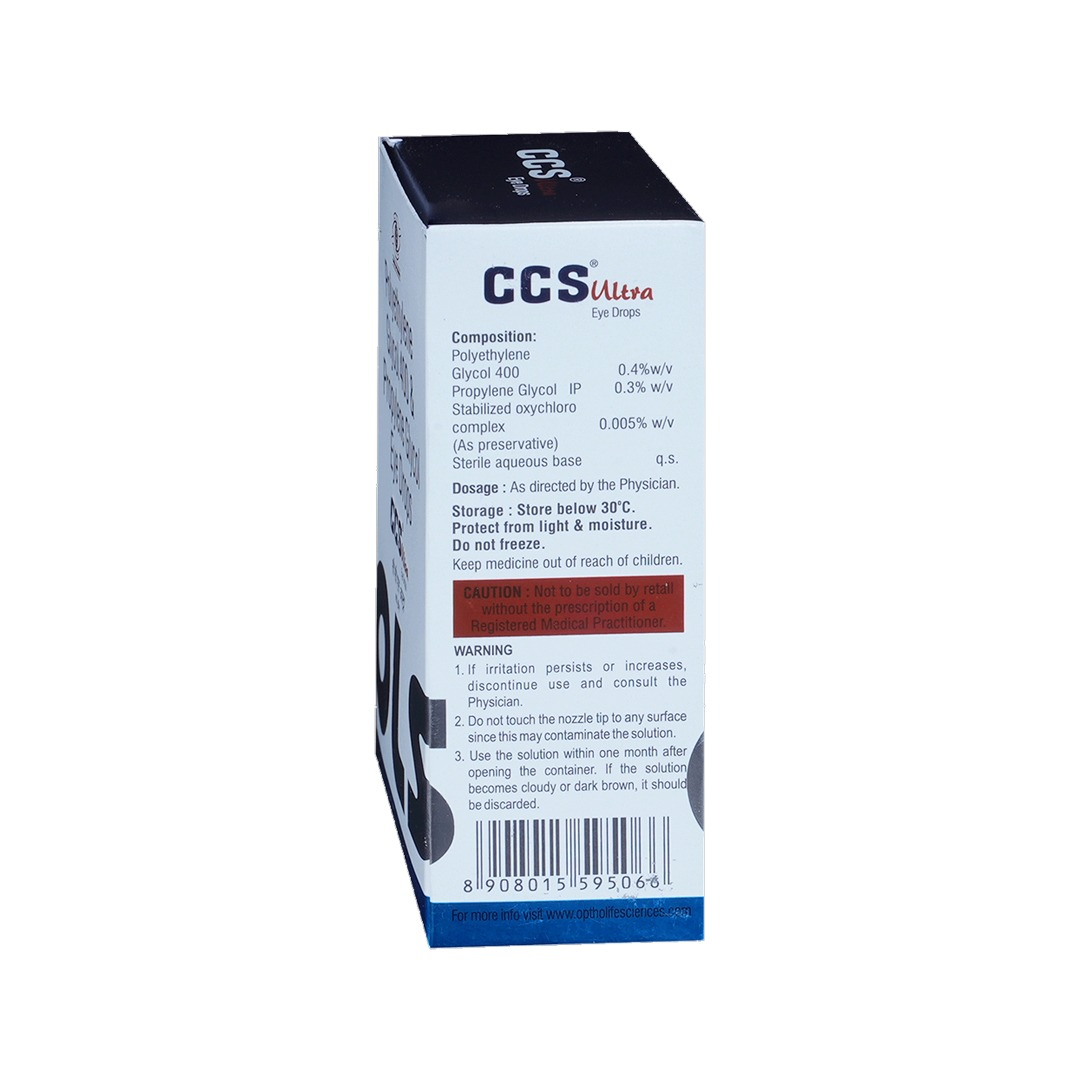 CCS Ultra Eye Drop is a high-performance lubricating solution designed to provide rapid and long-lasting relief from the symptoms of dry eyes. Formulated with a synergistic blend of Polyethylene Glycol and Propylene Glycol, it works by mimicking the action of natural tears to restore the eye’s moisture balance. This advanced “Ultra” formula creates a protective, soothing shield over the corneal surface, which reduces friction between the eyelid and the eye. It is particularly effective for individuals experiencing ocular discomfort, grittiness, or burning sensations caused by environmental factors such as wind, sun, air conditioning, or prolonged screen time (digital eye strain). By stabilizing the tear film, CCS Ultra ensures sustained comfort and enhanced visual clarity throughout the day.