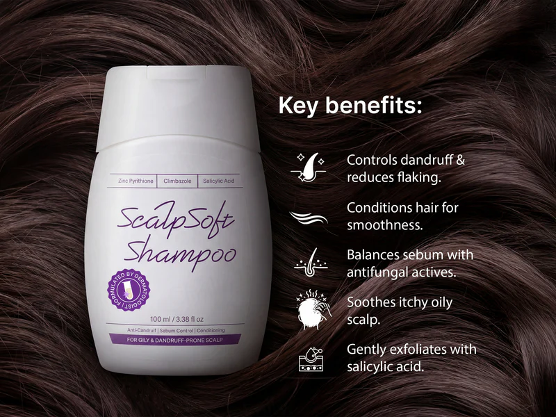 Clinikally ScalpSoft Anti-Dandruff Shampoo is a high-potency trichological intervention containing a synergistic blend of Ketoconazole, Salicylic Acid, and Pro-Vitamin B5, specifically engineered for the clinical management of seborrheic dermatitis, Pityriasis capitis (dandruff), and localized scalp pruritus. Utilizing a unique “Micro-Exfoliating” delivery system, this shampoo works by inhibiting the proliferation of Malassezia fungus while simultaneously dissolving the lipophilic bonds of adherent flakes. By modulating the scalp’s sebum production and reinforcing the epidermal barrier, ScalpSoft effectively restores a healthy follicular environment. This targeted biochemical action provides a decisive therapeutic response by neutralizing the fungal triggers of inflammation and preventing the recurrence of visible scaling without stripping the hair of its essential lipids.