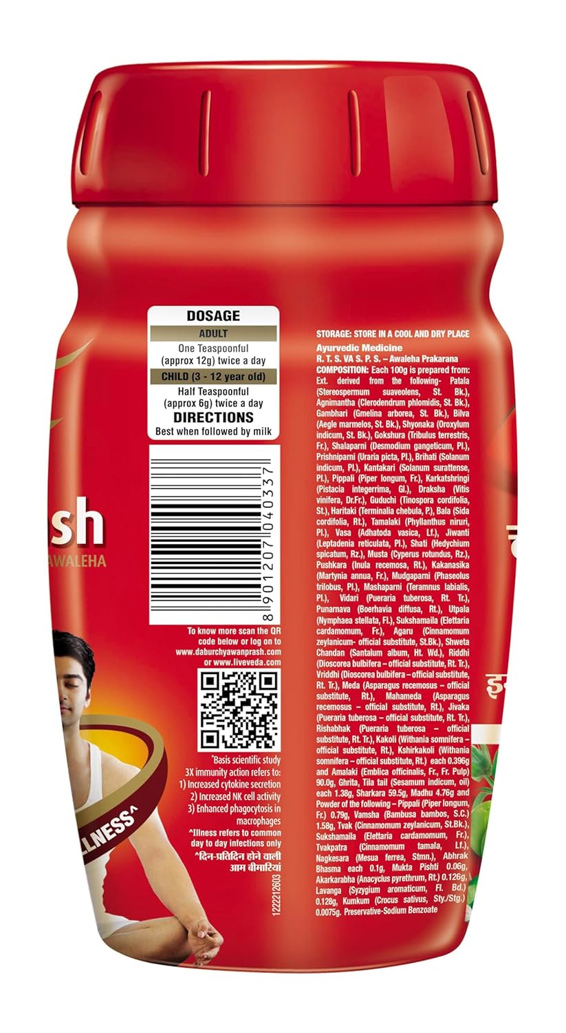 Dabur Red Chyawanprash is a trusted Ayurvedic health supplement formulated to boost immunity, improve strength, and support overall wellness. Enriched with the goodness of Amla and a blend of traditional Ayurvedic herbs, it helps protect the body from common infections and supports daily energy and vitality when consumed regularly.