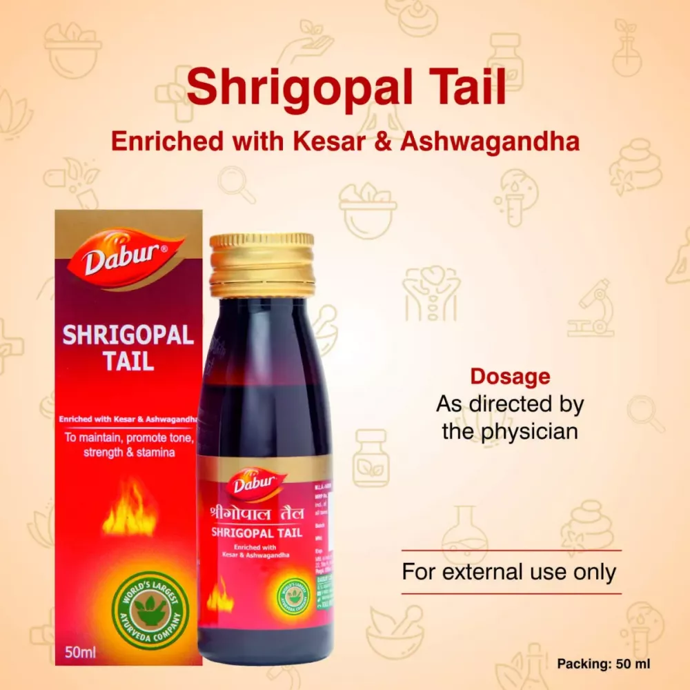 Dabur Shrigopal Tail is a classic Ayurvedic medicated oil formulated specifically for men to address concerns related to physical strength, stamina, and neuromuscular health. Prepared using a traditional “Taila Pak Vidhi” process, this oil is infused with a variety of potent herbs that help improve blood circulation and strengthen the local tissues when applied topically. It is traditionally used to manage symptoms of “Vata” imbalance, such as weakness in the muscles and nerves.