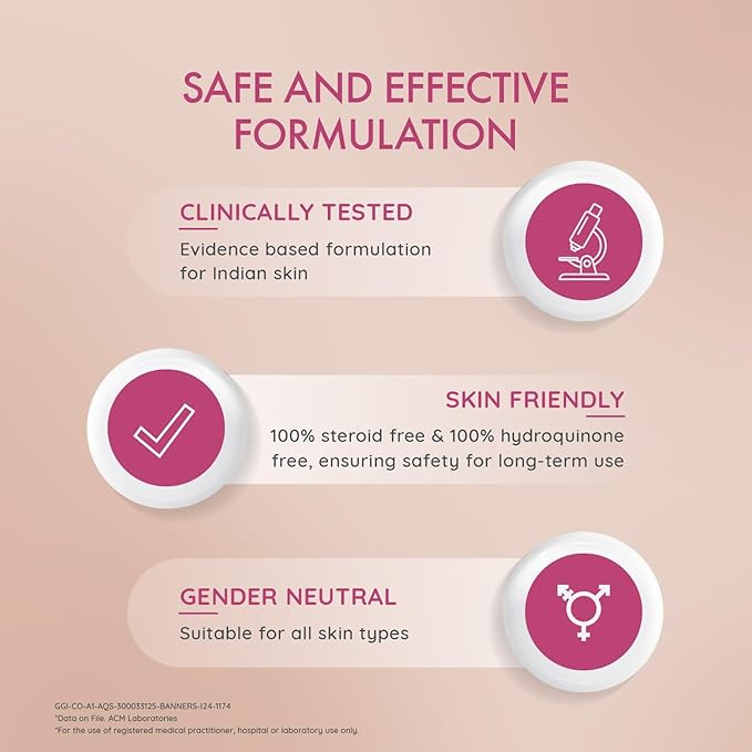 - Controls melanin production to reduce dark spots and pigmentation.