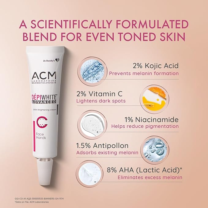 Depiwhite Advanced Cream is an effective formula designed to visibly reduce dark spots and even out skin tone, delivering a radiant, glowing complexion.