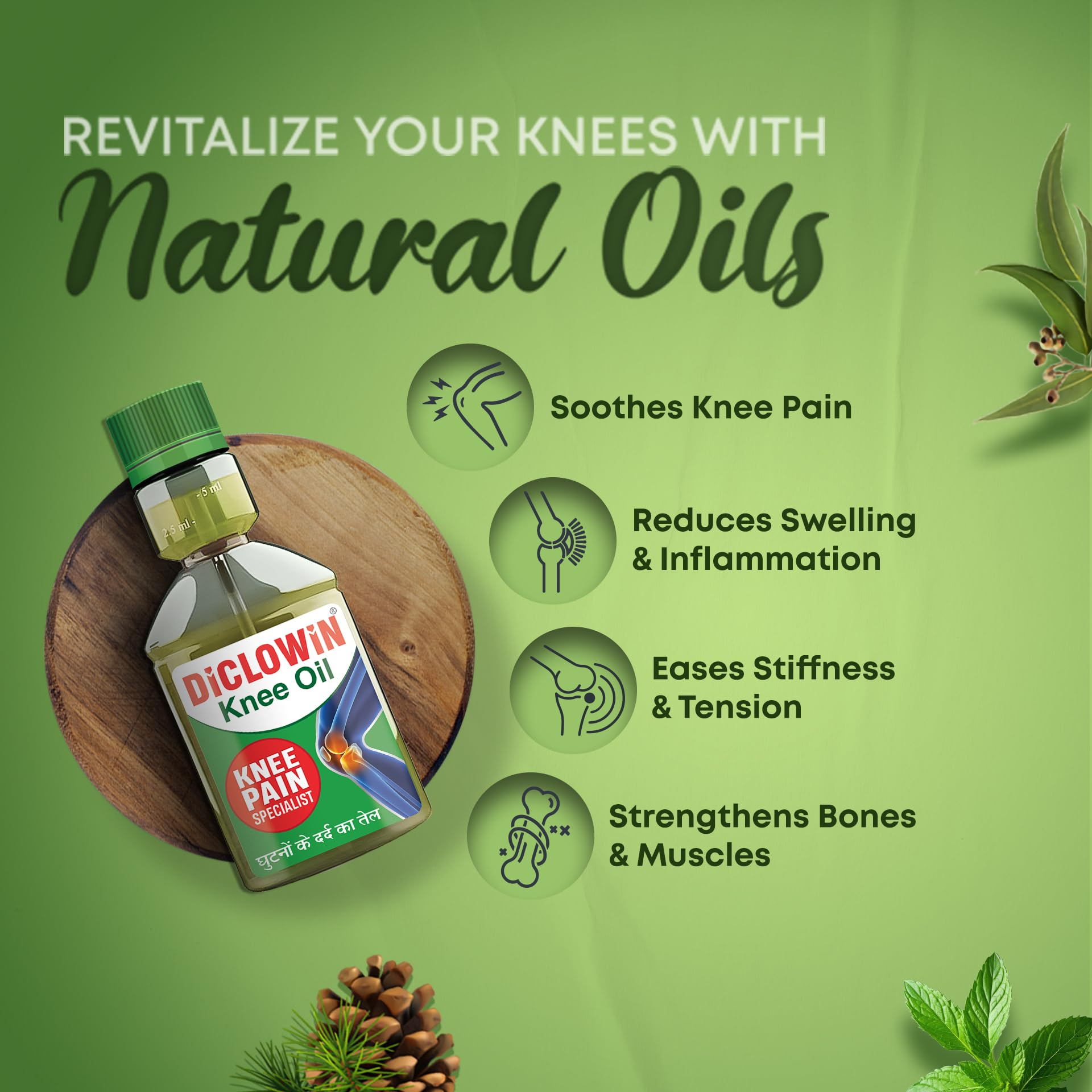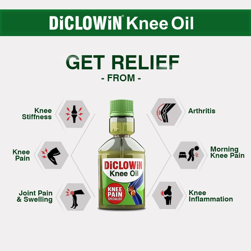 Diclowin Knee Oil is a specialized, fast-acting pain relief formula specifically engineered to target knee discomfort and joint stiffness. Unlike general pain balms, this oil utilizes a “Targeted Penetration Technology” to deliver its potent blend of ingredients deep into the synovial layers of the knee joint. It combines the anti-inflammatory power of Diclofenac with time-tested Ayurvedic oils to provide dual-action relief: it reduces internal inflammation while providing an immediate warming sensation to soothe sore muscles and ligaments. Whether the pain is due to age-related wear and tear, sports injuries, or long hours of standing, Diclowin Knee Oil helps restore mobility and flexibility, allowing for smoother, pain-free movement.