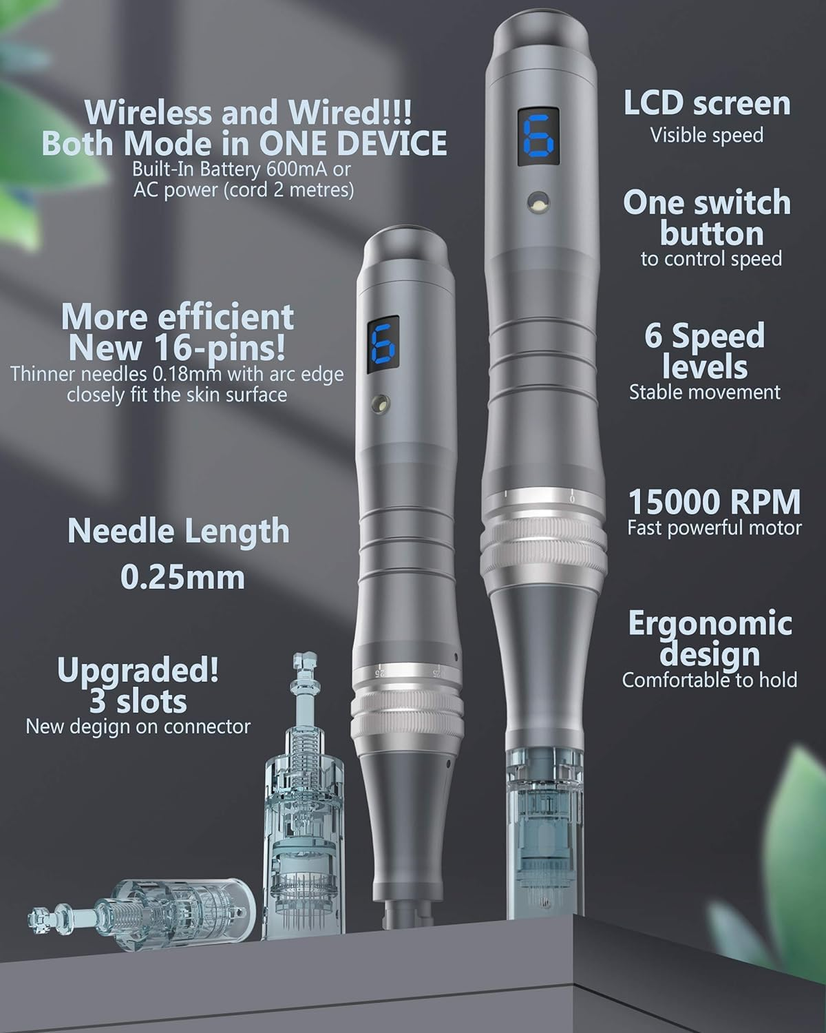 - Specifically formulated with an advanced 6-speed motor to target the biological pathways of collagen induction with high-frequency precision.