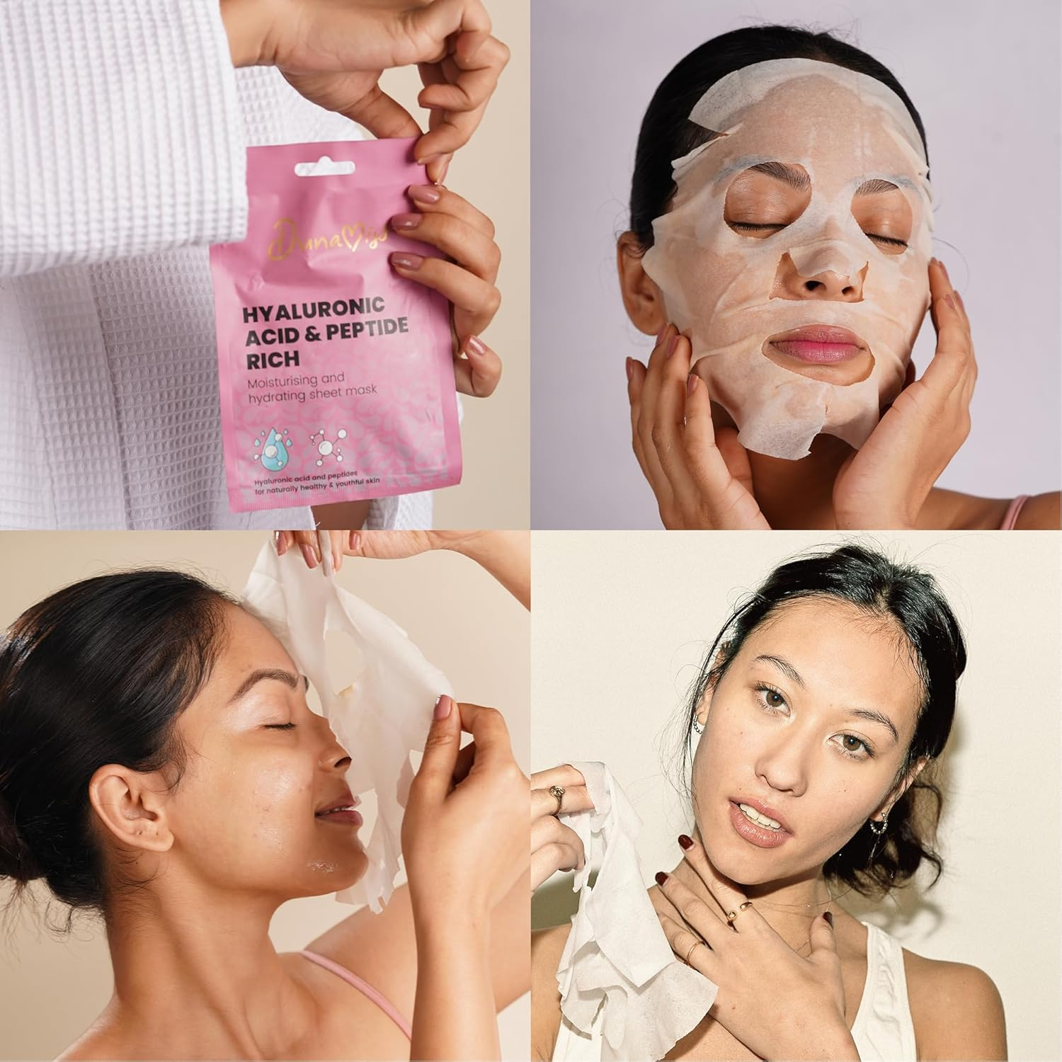 - Apply one sheet mask per session. Carefully unfold the mask and align the apertures with the eyes, nose, and mouth.