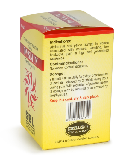 Dysmin Tablets provide gentle relief from abdominal and pelvic discomfort associated with menstruation along with nausea, vomiting, and backache. These tablets support overall well-being during the monthly cycle.
