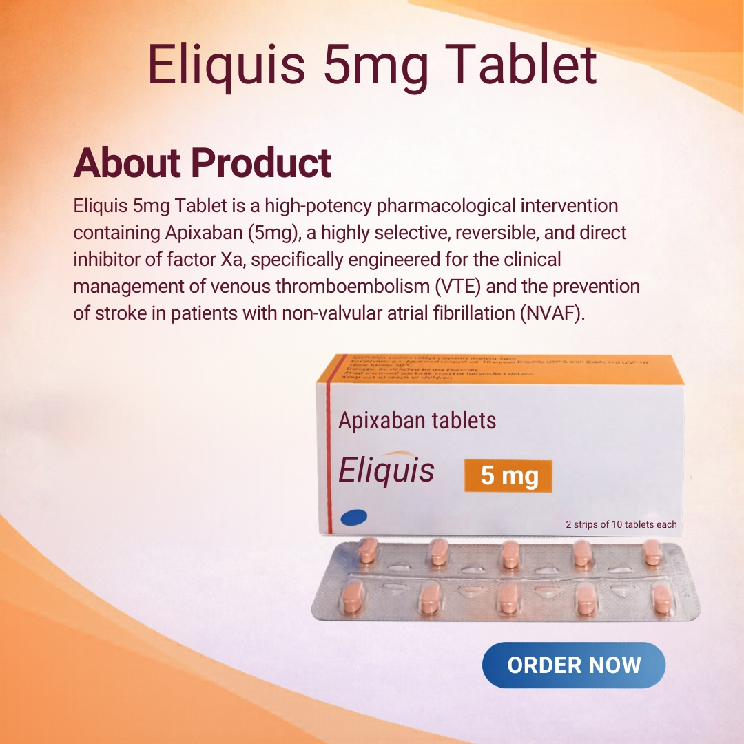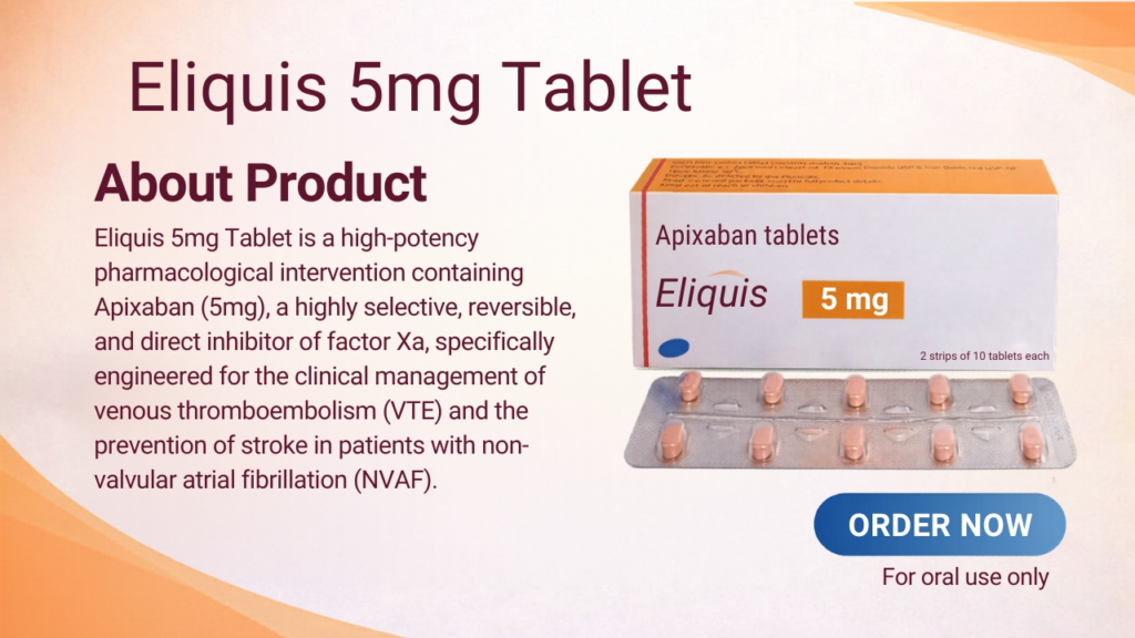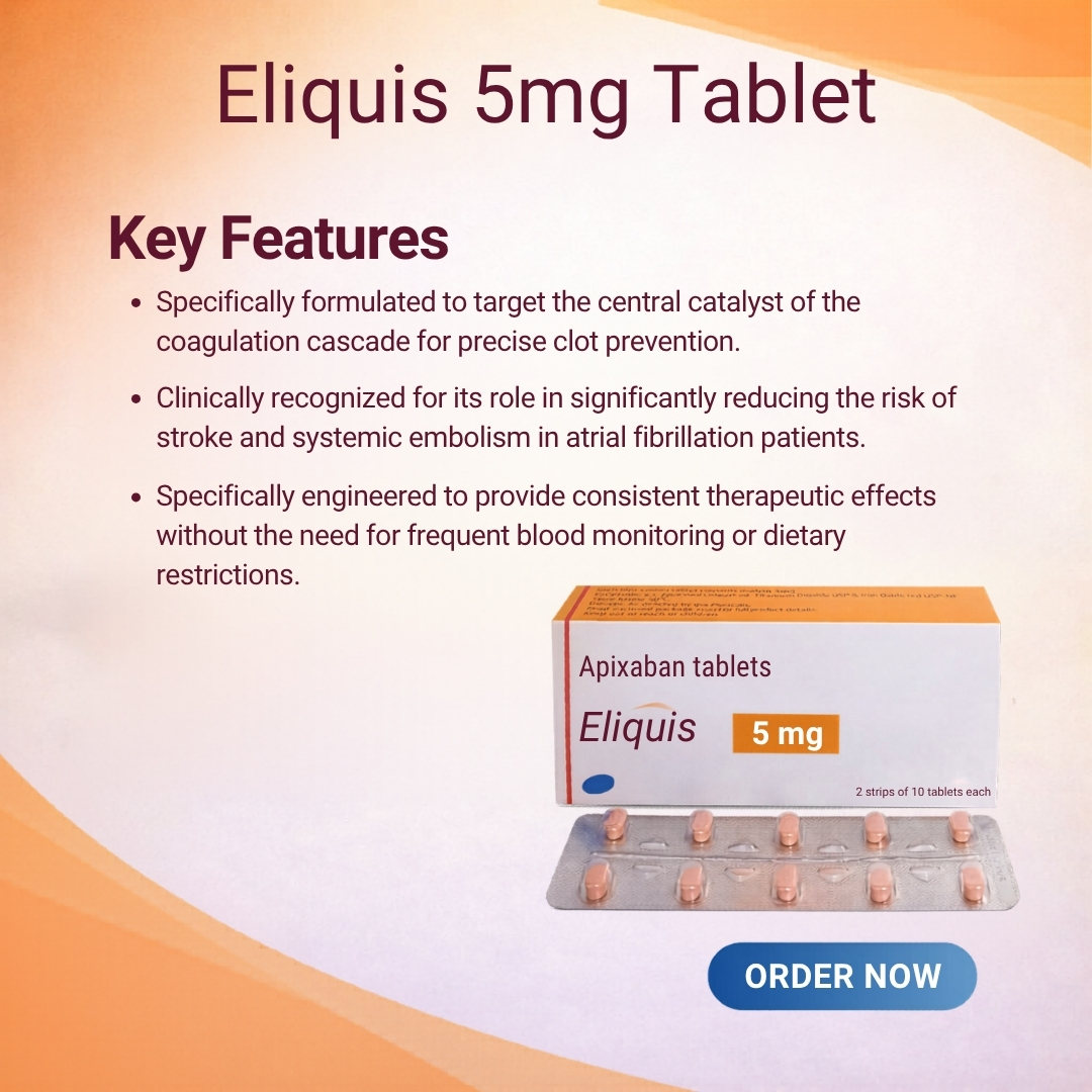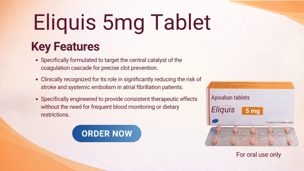 Legal Disclaimer: Eliquis 5mg Tablet is a prescription-only medication. Individual results vary based on the baseline cardiovascular health and the patient’s metabolic profile. This product is not intended for the treatment of patients with prosthetic heart valves. This information is for educational purposes and is not a substitute for professional medical consultation or a formal hematological assessment.