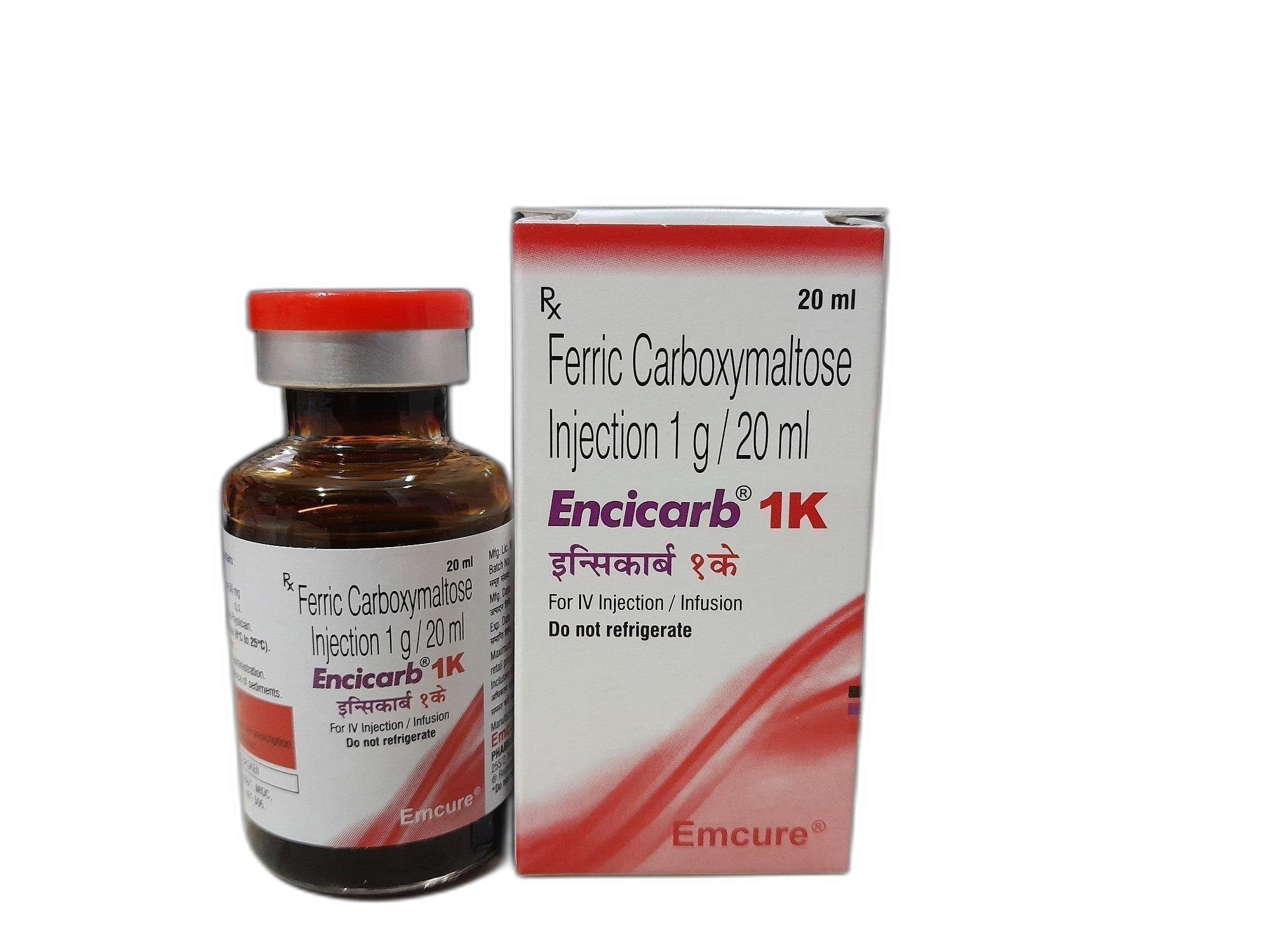 Encicarb 1K Injection contains ferric carboxymaltose and is used to treat iron deficiency anemia — a condition where the body doesn’t have enough healthy red blood cells due to low iron levels. It helps replenish iron stores, improve hemoglobin levels, and reduce symptoms like fatigue and weakness when administered by a healthcare professional. :contentReference[oaicite:1]{index=1}