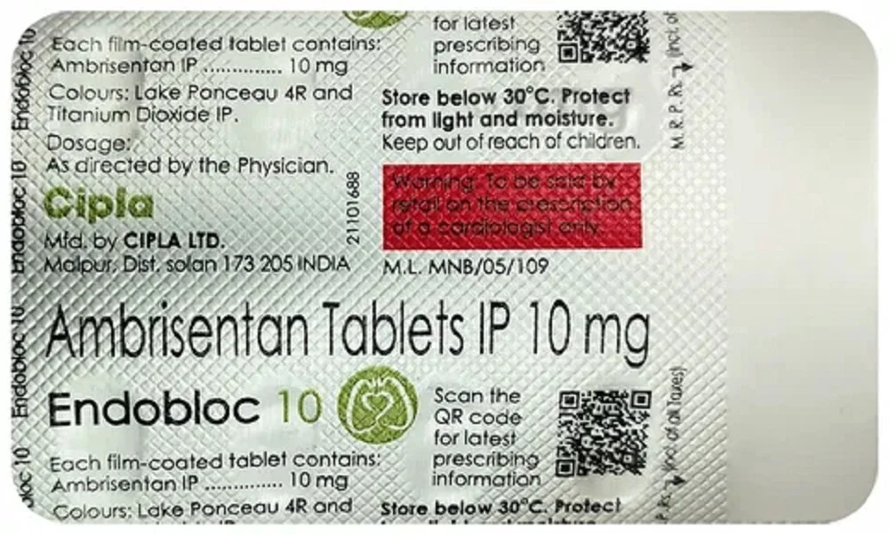 Endobloc 10mg Tablet is a specialized cardiovascular medication containing Ambrisentan, primarily used to treat Pulmonary Arterial Hypertension (PAH). This condition is characterized by high blood pressure in the arteries that carry blood from the heart to the lungs. As an endothelin receptor antagonist, Endobloc works by blocking the action of endothelin, a natural substance that causes blood vessels to narrow and tighten. By promoting vasodilation (widening of the vessels), it reduces blood pressure in the pulmonary arteries and eases the workload on the right side of the heart. This treatment is clinically proven to improve exercise capacity, enhance daily quality of life, and slow the overall progression of the disease.