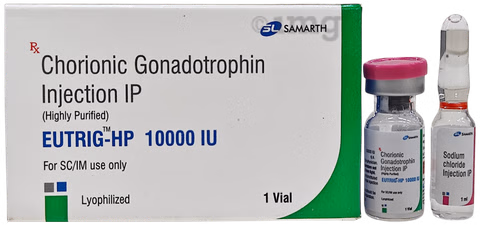 Eutrig HP 10000 IU Injection is a prescription hormonal medicine used primarily in fertility treatments. It contains human chorionic gonadotropin (hCG), which helps stimulate ovulation in women and supports testosterone production and sperm development in men. This injection should be administered strictly under medical supervision.