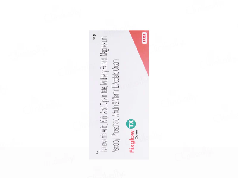 Fixglow-TX Cream is a dermatological formulation used to manage skin pigmentation issues such as melasma, dark spots, acne marks, and uneven skin tone. It works by reducing excess melanin production, helping to lighten pigmentation and improve overall skin clarity. With regular use as prescribed, Fixglow-TX Cream promotes a brighter, more even complexion and healthier-looking skin.
