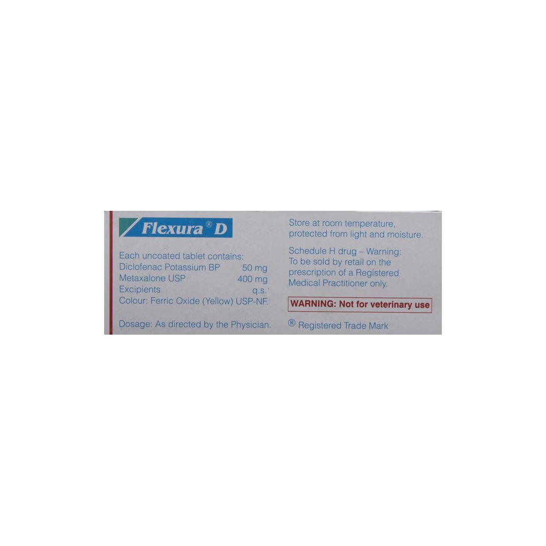 Flexura D Tablet is a prescription medicine commonly used for the management of muscle pain, spasms, and inflammatory conditions. It helps relieve pain, reduce muscle stiffness, and improve mobility. This medicine should be taken strictly under medical supervision.