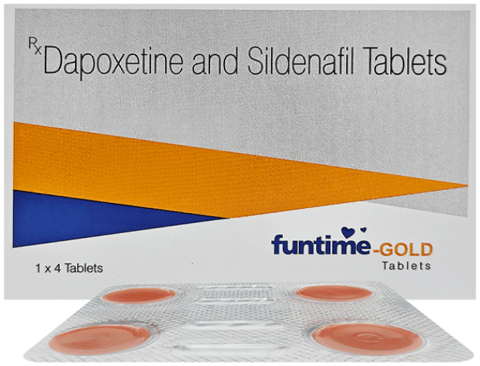 Funtime Gold 50mg | 30mg Tablet is a prescription medicine used in the treatment of erectile dysfunction (ED) in men. It contains Sildenafil and Dapoxetine, which help improve blood flow to the penis and delay ejaculation, thereby enhancing sexual performance and control when taken as prescribed by a healthcare professional.