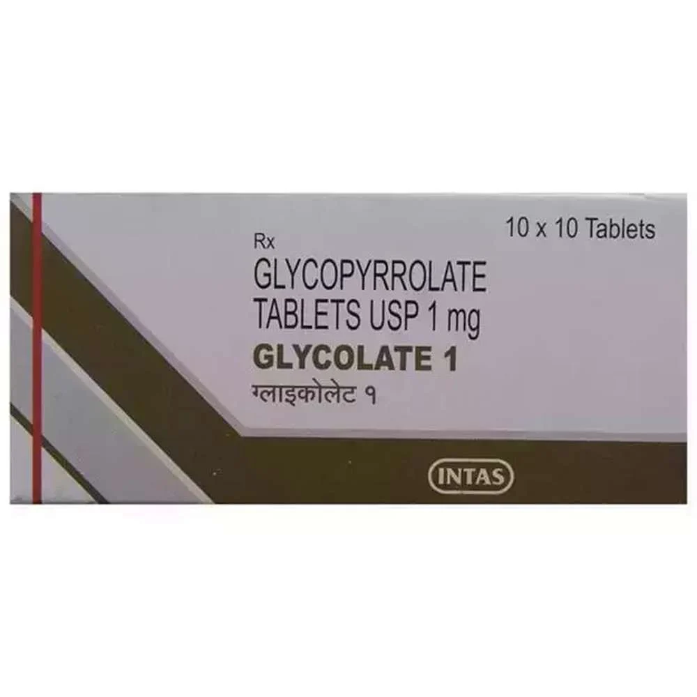 Glycolate 1 Tablet contains glycopyrrolate and is a prescription anticholinergic medicine used in the treatment of peptic ulcer disease and to reduce excessive body secretions such as saliva and sweat. It works by blocking certain nerve impulses that stimulate acid and secretion production, helping relieve symptoms effectively when taken as prescribed.