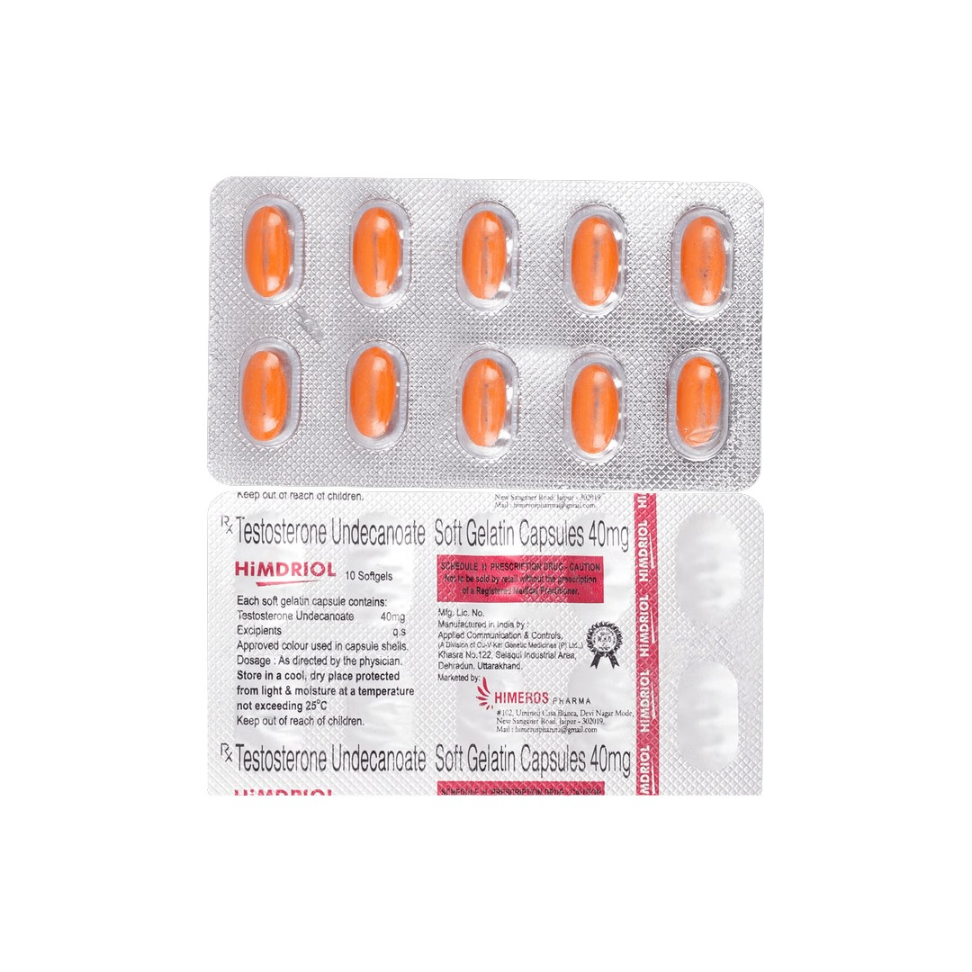 Himdriol Soft Gelatin Capsule is a prescription medicine used in the treatment of male hypogonadism (low testosterone levels in men). It contains Testosterone, which helps restore normal testosterone levels in the body and improves symptoms such as low libido, fatigue, muscle weakness, and mood changes when taken under medical supervision.