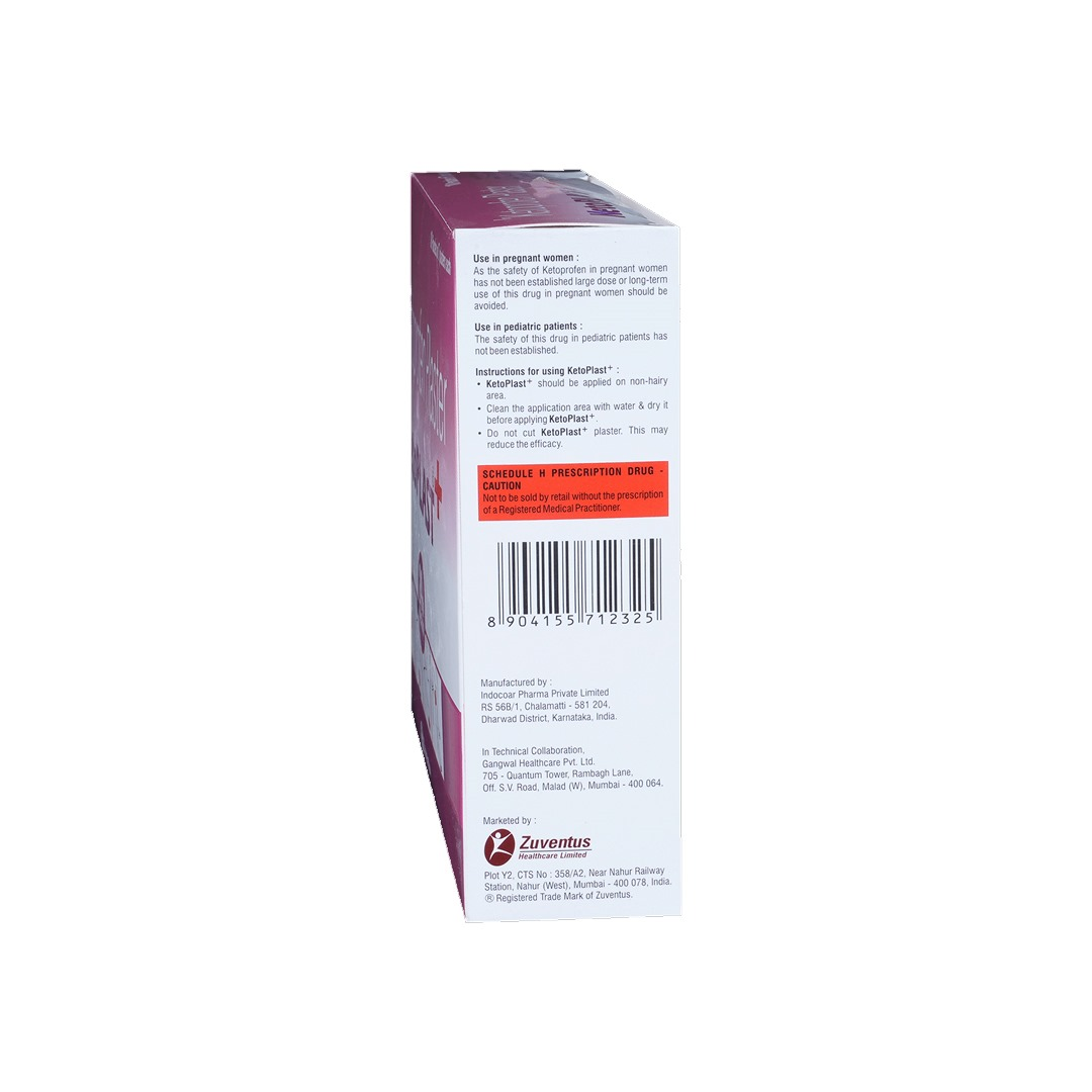 Ketoplast Plus Plaster works by delivering ketoprofen directly through the skin to the affected area. Ketoprofen reduces the production of pain-causing and inflammation-causing chemicals, providing effective localized pain relief without significant systemic effects.