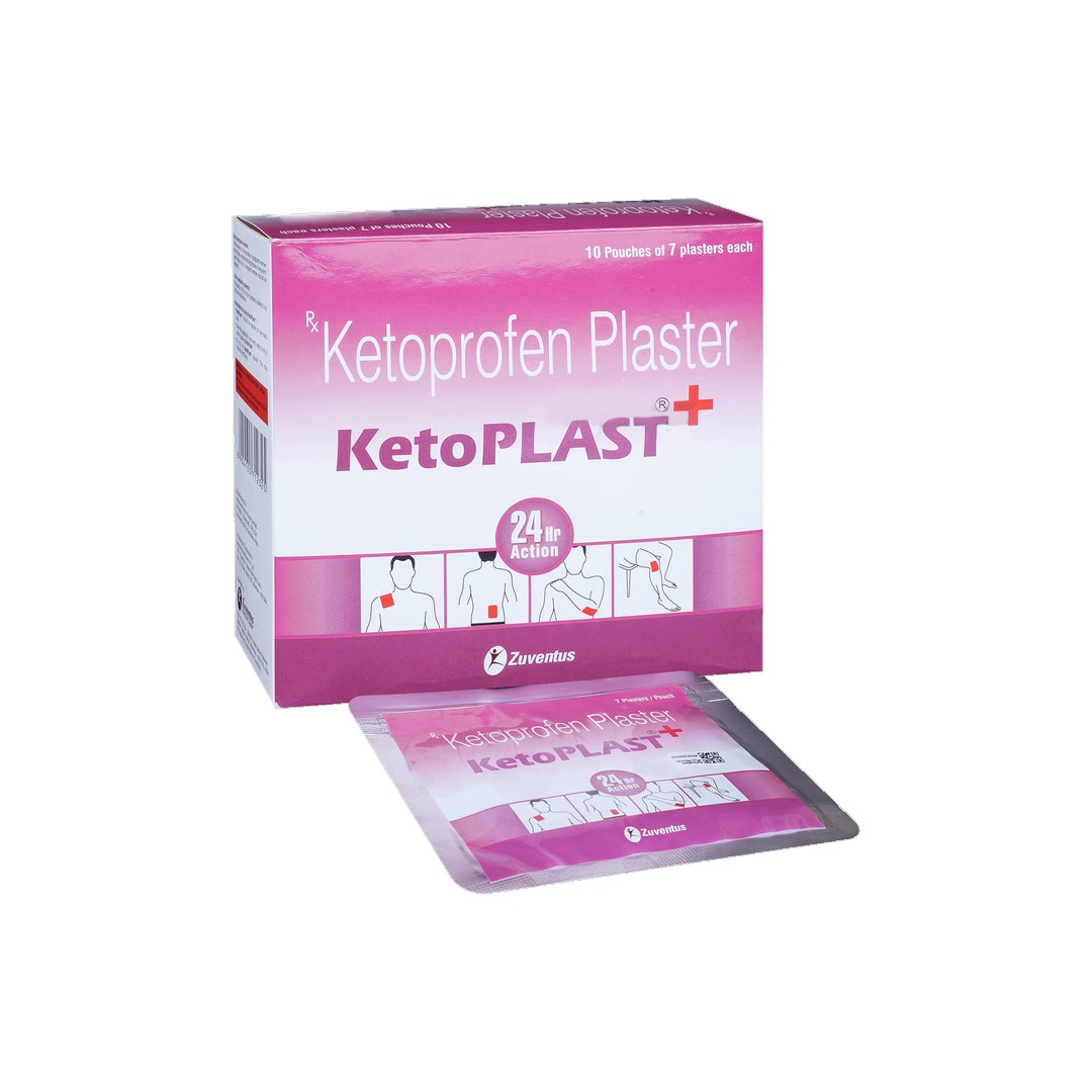 Ketoplast Plus Plaster is a medicated pain-relief plaster used for the management of localized muscle and joint pain. It helps reduce pain, inflammation, and swelling associated with sprains, strains, back pain, and sports injuries. The plaster delivers medicine directly to the affected area for targeted and long-lasting relief.