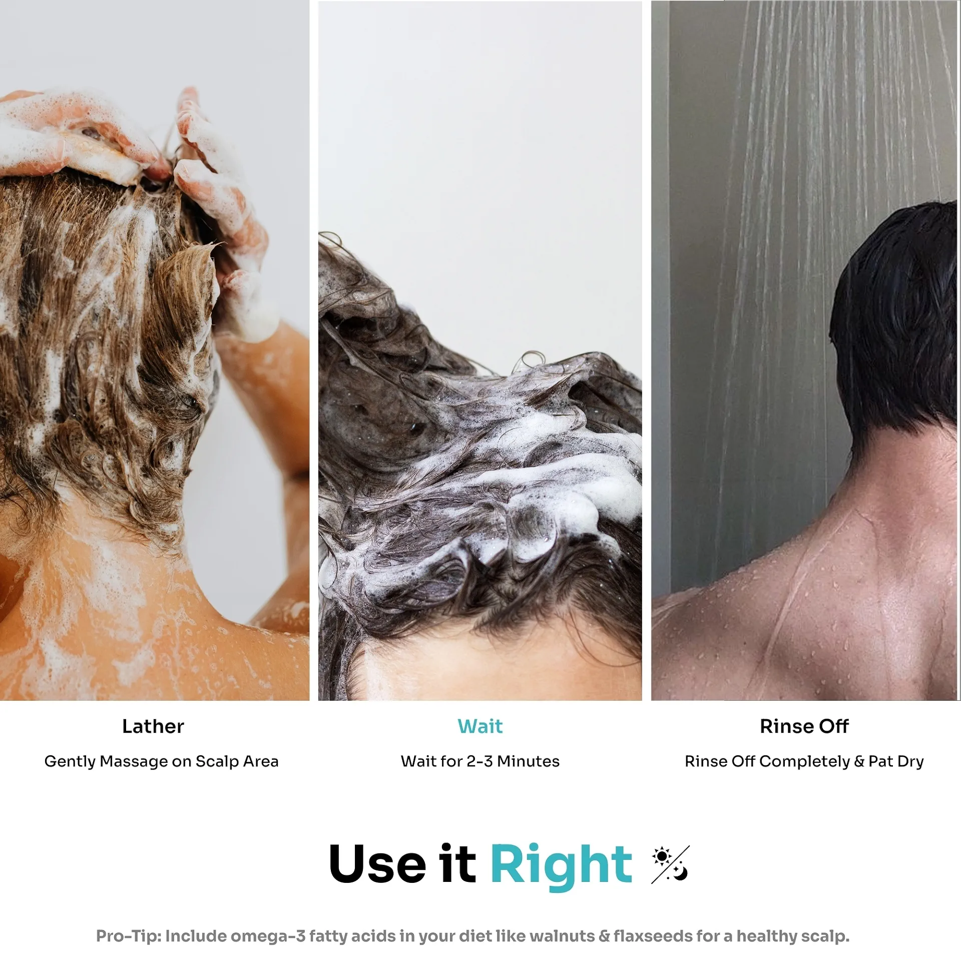 - Apply a sufficient amount of shampoo to the scalp.