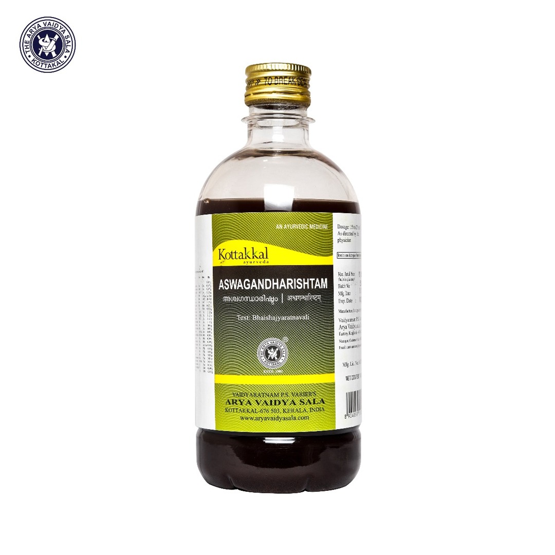 Aswagandharishtam is a classical Ayurvedic fermented liquid formulation traditionally used to support strength, vitality, and overall rejuvenation. It helps manage stress, improve stamina, support nervous system health, and aid recovery from weakness when used as advised by an Ayurvedic practitioner.