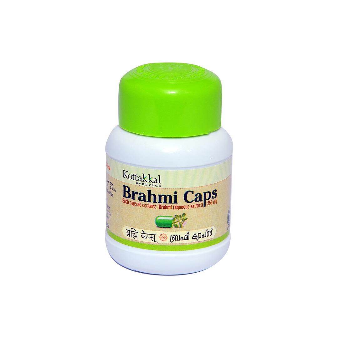 Kottakkal Brahmi Caps is an Ayurvedic herbal supplement formulated to support brain health, memory, and mental clarity. Prepared using classical Ayurvedic principles, it helps enhance concentration, learning ability, and cognitive performance while also supporting calmness and stress management when used regularly as advised.
