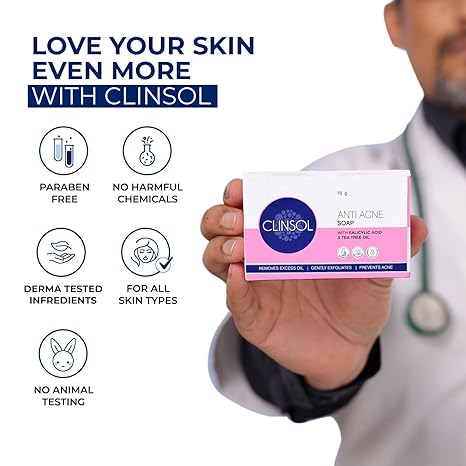 Clinsol soap is specially formulated for acne and oily skin, effectively reducing acne blemishes, blackheads, and excess oil without irritation. It nourishes and soothes skin for a clearer complexion.