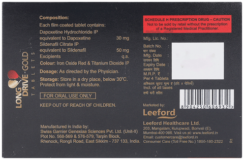 Long Drive-Gold Tablet is a powerful, dual-action pharmaceutical treatment specifically formulated for adult men facing the challenges of erectile dysfunction (ED) and premature ejaculation (PE). In the modern world, performance anxiety and physiological stressors can often impact intimate experiences. This medication addresses these concerns by combining two clinically proven active ingredients—Sildenafil Citrate and Dapoxetine—into a single, high-efficiency tablet. By simultaneously improving blood flow and extending the duration of intimacy, Long Drive-Gold provides a comprehensive solution that helps men regain their sexual confidence and fosters a more satisfying and controlled experience for both partners.