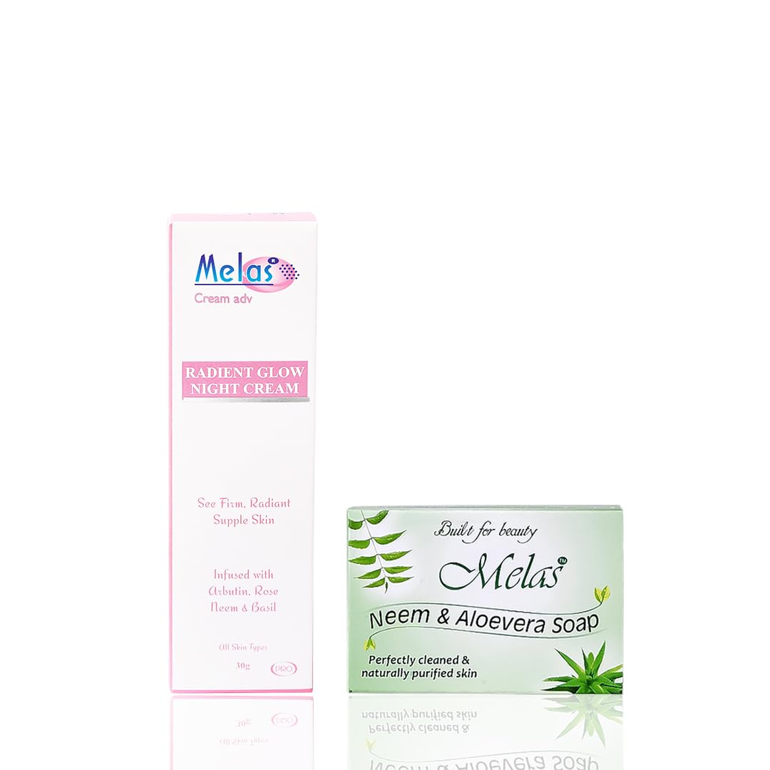 The Melas Perfect Skincare Combo is a curated two-step regimen designed to simplify your evening beauty routine and restore your skin’s natural brilliance. This essential kit features the Melas Night Cream paired with a specialized Melas Soap (Neem-Aloe Vera or Moisturizing variant), providing a comprehensive solution for combination and dry skin types. The combo works by deeply cleansing the skin to remove daily toxins and then delivering an intensive overnight treatment that targets hyperpigmentation, dark spots, and uneven skin tone. Formulated with a blend of modern dermatological actives and traditional herbal extracts, this combo helps rebuild the skin’s moisture barrier while you sleep, ensuring you wake up to a complexion that feels velvety-soft, nourished, and visibly radiant.