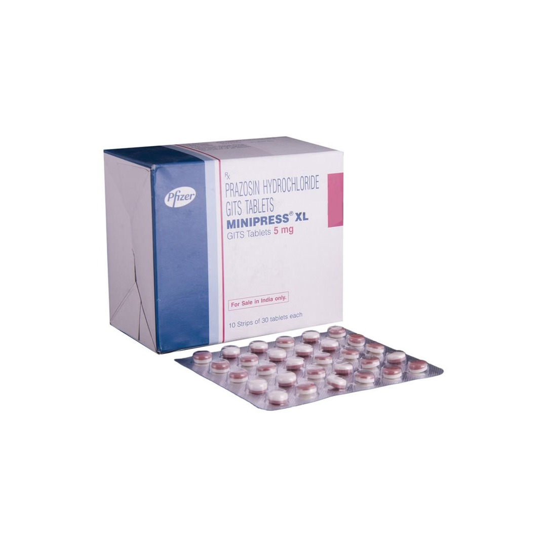 Minipress XL 5mg Tablet is a prescription medicine containing Prazosin, an alpha-blocker used primarily to treat high blood pressure (hypertension). It works by relaxing and widening blood vessels, allowing blood to flow more easily and helping reduce blood pressure levels. It may also be prescribed for certain urinary symptoms related to an enlarged prostate.