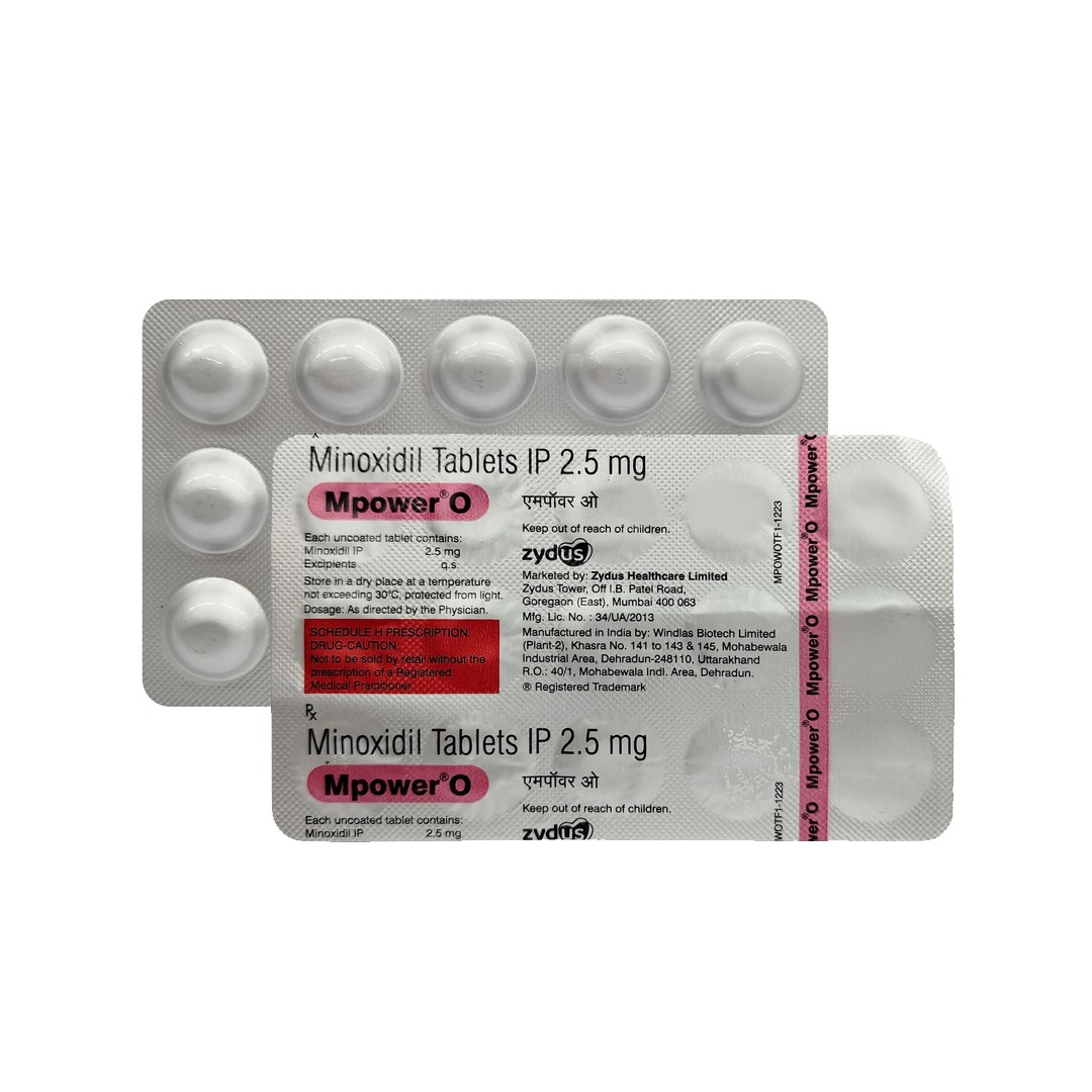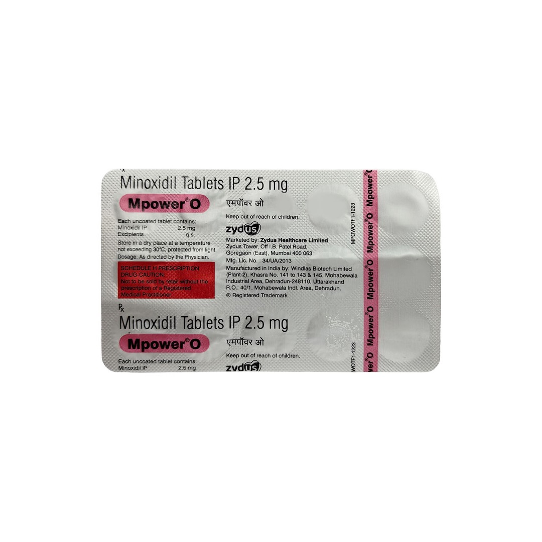 Mpower-O Tablet contains Minoxidil and is used to treat high blood pressure (hypertension). It works by relaxing and widening blood vessels, which helps improve blood flow and reduces blood pressure. In some cases, it may also be prescribed to support hair growth by improving blood circulation to hair follicles.