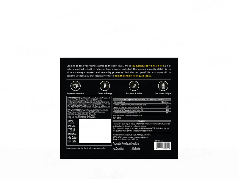 MuscleBlaze Koshaveda Shilajit Pro Resin is a premium Ayurvedic supplement formulated to support energy production, stamina, overall vitality, and physical performance. Made with high-quality Shilajit resin, this product is rich in fulvic acid and minerals that help enhance nutrient absorption and support the body’s natural energy systems. It is popular among fitness enthusiasts and individuals seeking improved endurance and recovery.