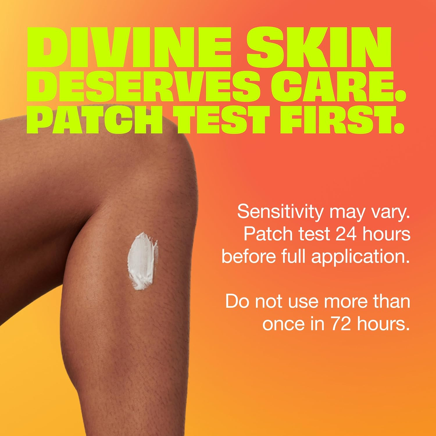 - Essential to perform a patch test on a small area of the intended treatment site 24 hours prior to full application to check for hypersensitivity.