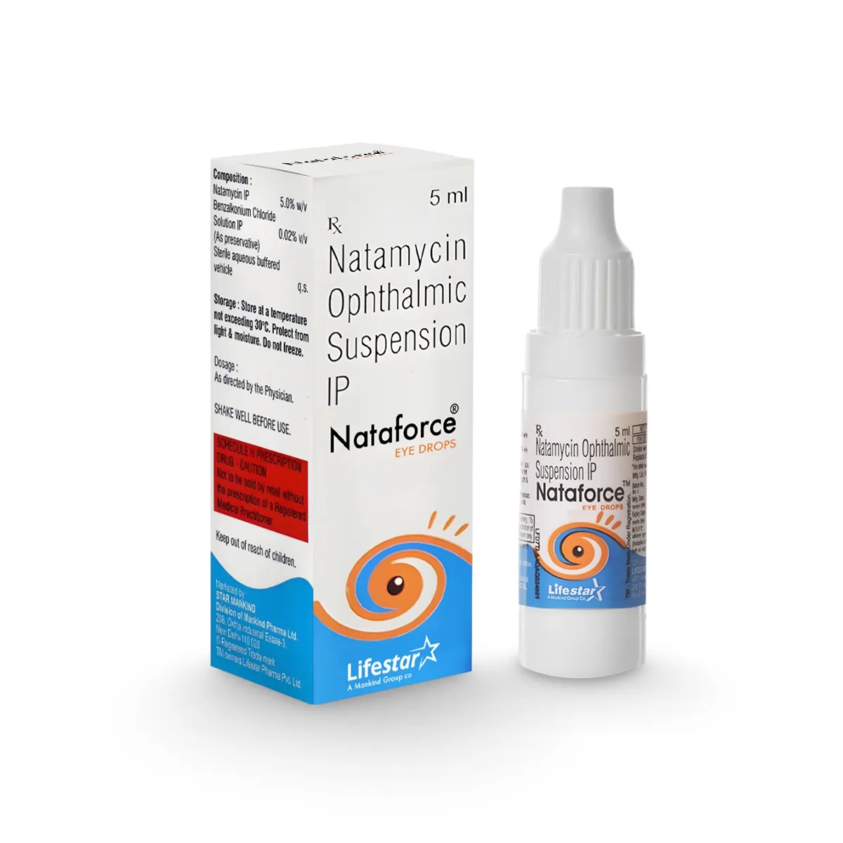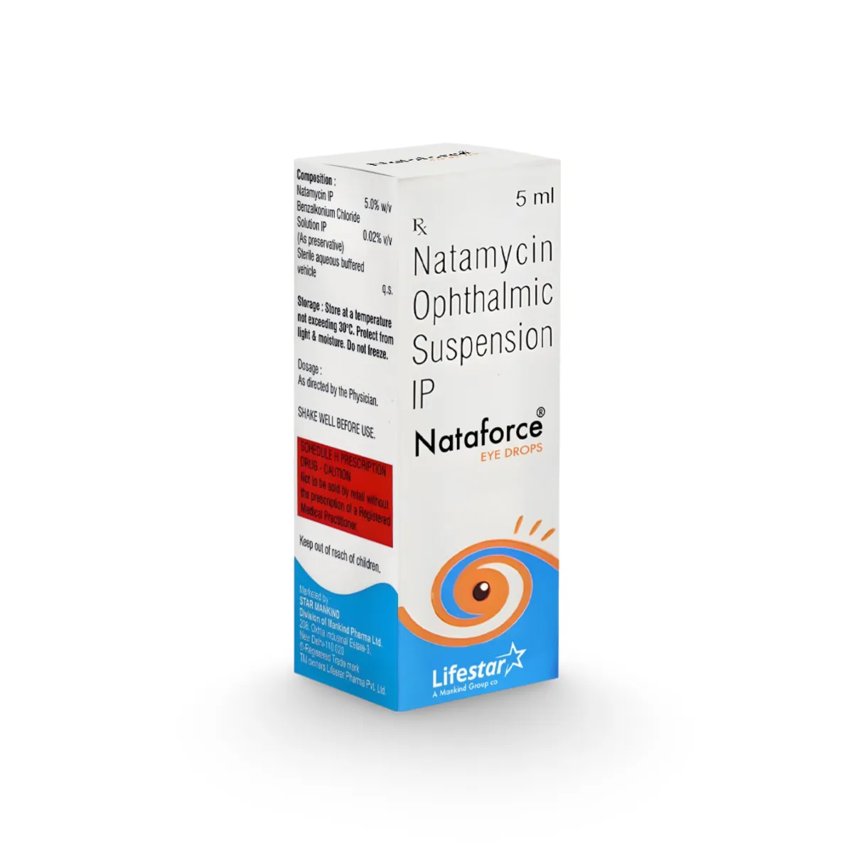 Nataforce Eye Drop is a potent antifungal ophthalmic suspension specifically formulated to treat fungal infections of the eye, most notably fungal keratitis. Fungal infections of the cornea are serious medical conditions that often occur following ocular trauma involving plant material, soil, or the long-term use of topical corticosteroids. As a specialized polyene antifungal, Nataforce works by binding to the sterols in the fungal cell membrane, increasing permeability and causing the cellular contents to leak out, which effectively destroys the invading pathogens. This medication is a critical clinical intervention for preserving vision and preventing the deep-seated structural damage that can result from untreated fungal growth in the ocular tissues.