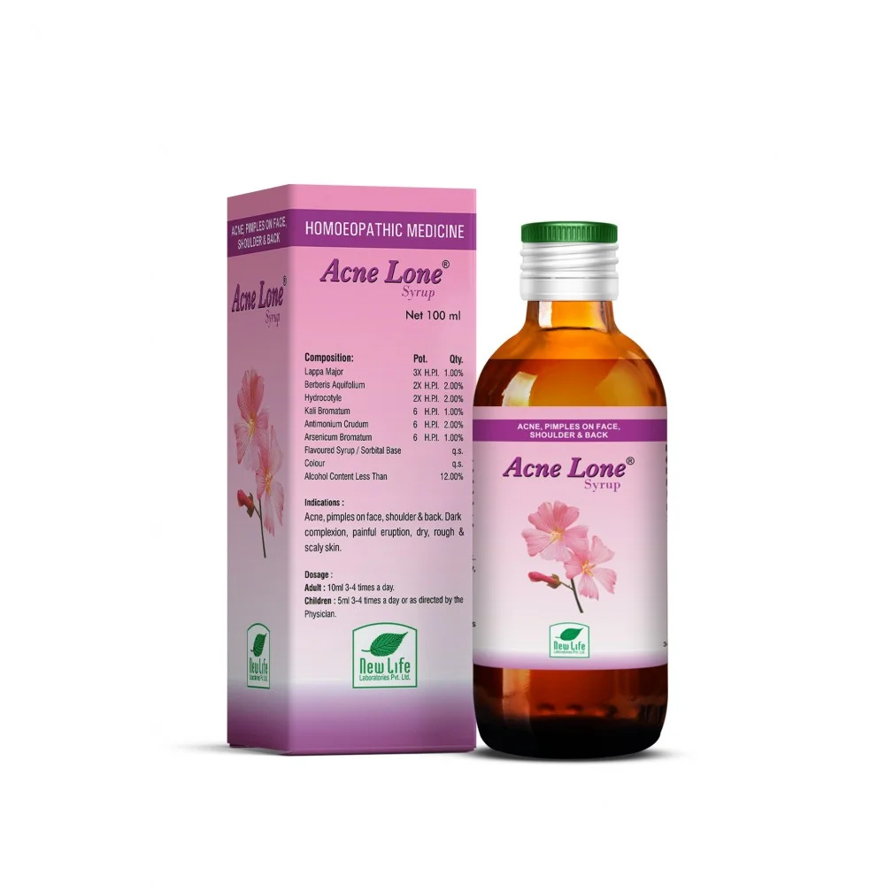 New Life Acnelone Syrup is a specialized homeopathic formulation designed to address various skin conditions, particularly acne vulgaris and inflammatory breakouts. This syrup acts as a natural blood purifier, targeting the internal causes of skin eruptions such as pimples on the face, shoulders, and back. It is especially effective for managing painful pustules, blackheads, and scaly skin conditions. By combining traditional homeopathic mother tinctures known for their affinity with the skin, Acnelone helps regulate sebum production and clear the complexion from within. Beyond treating active acne, it supports the fading of dark spots and acne marks, helping to restore a healthy, natural glow to dry or rough skin.