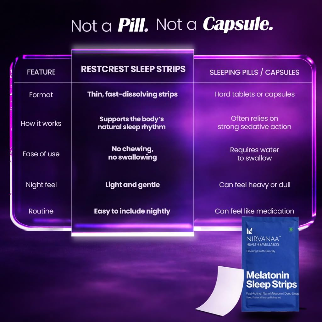 Legal Disclaimer: Nirvanaa Melatonin Sleep Strips are a dietary supplement and are not intended to diagnose, treat, or cure any sleep disorder. Individual results may vary based on stress levels and overall health. This information is for educational purposes and is not a substitute for professional medical advice.