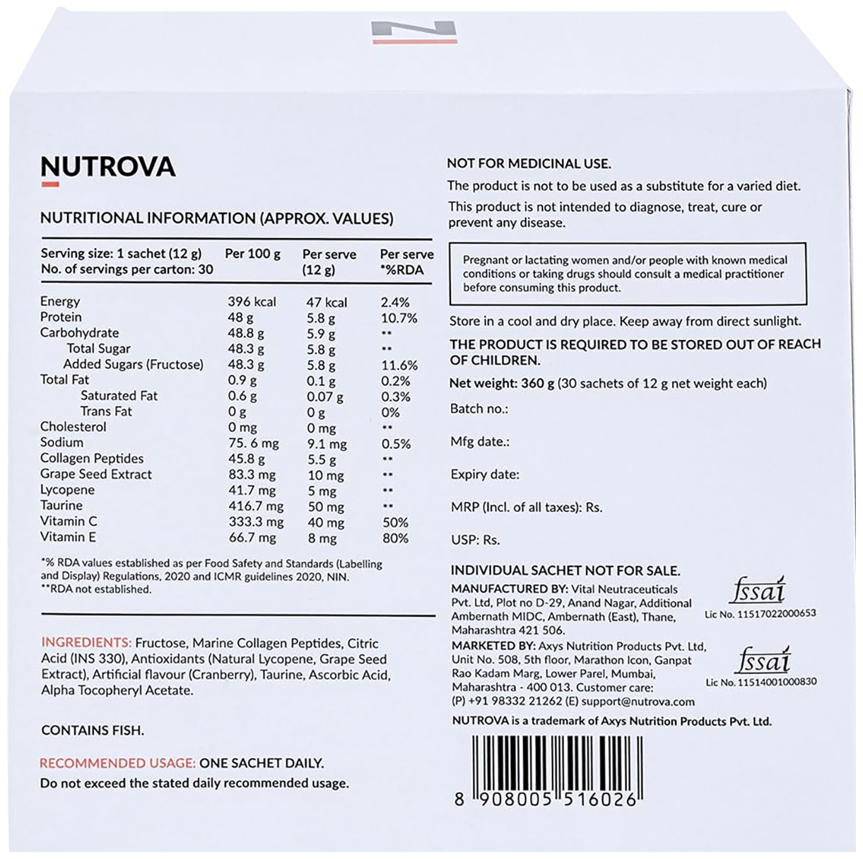 - Consume Nutrova Collagen+ Antioxidants as directed on the label.
