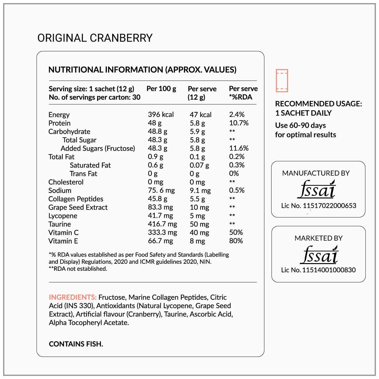 - Convenient single-serve sachets with cranberry flavor.