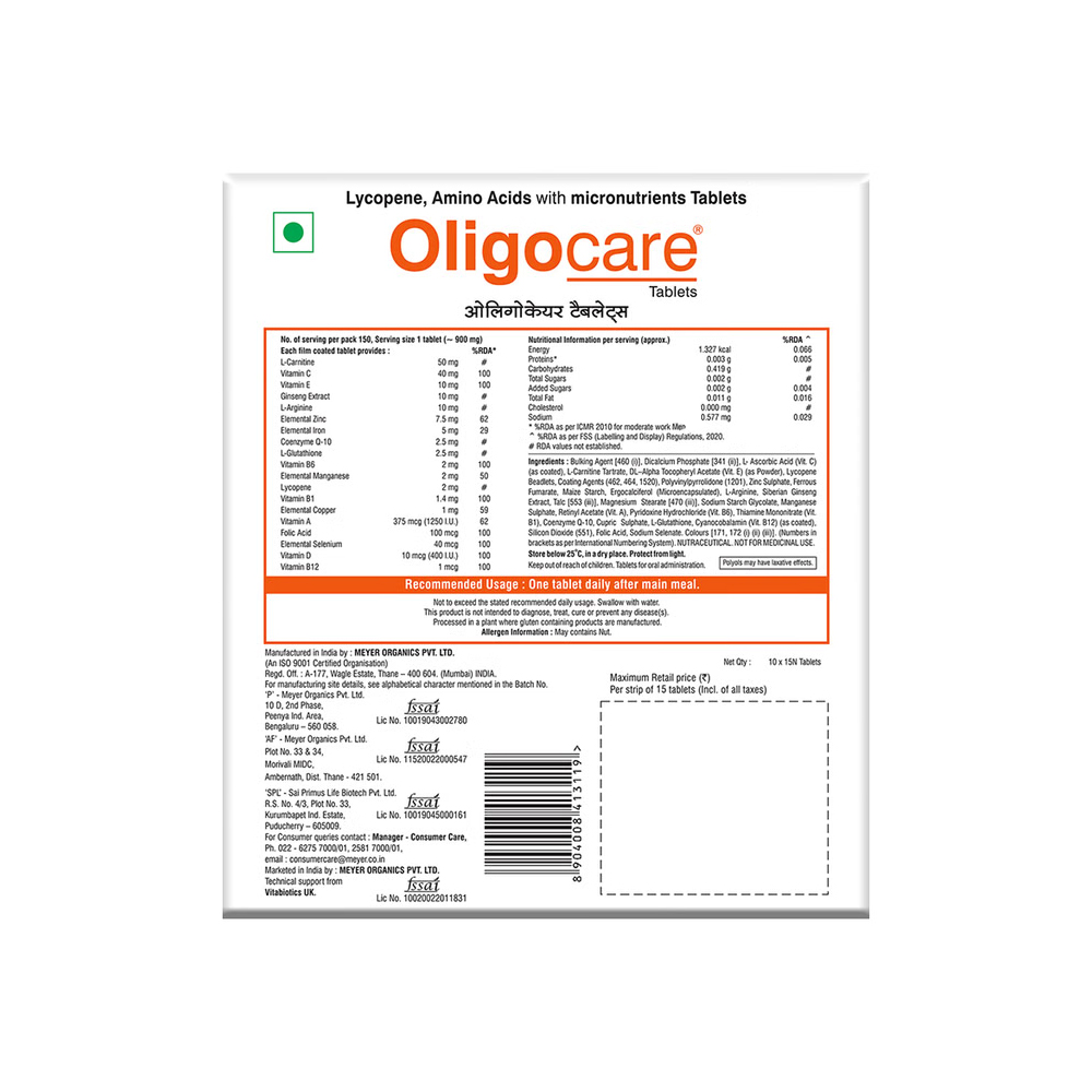Oligocare Tablet is a nutritional supplement enriched with vitamins, minerals, and antioxidants to support male reproductive health, boost energy, and improve sperm quality effectively.