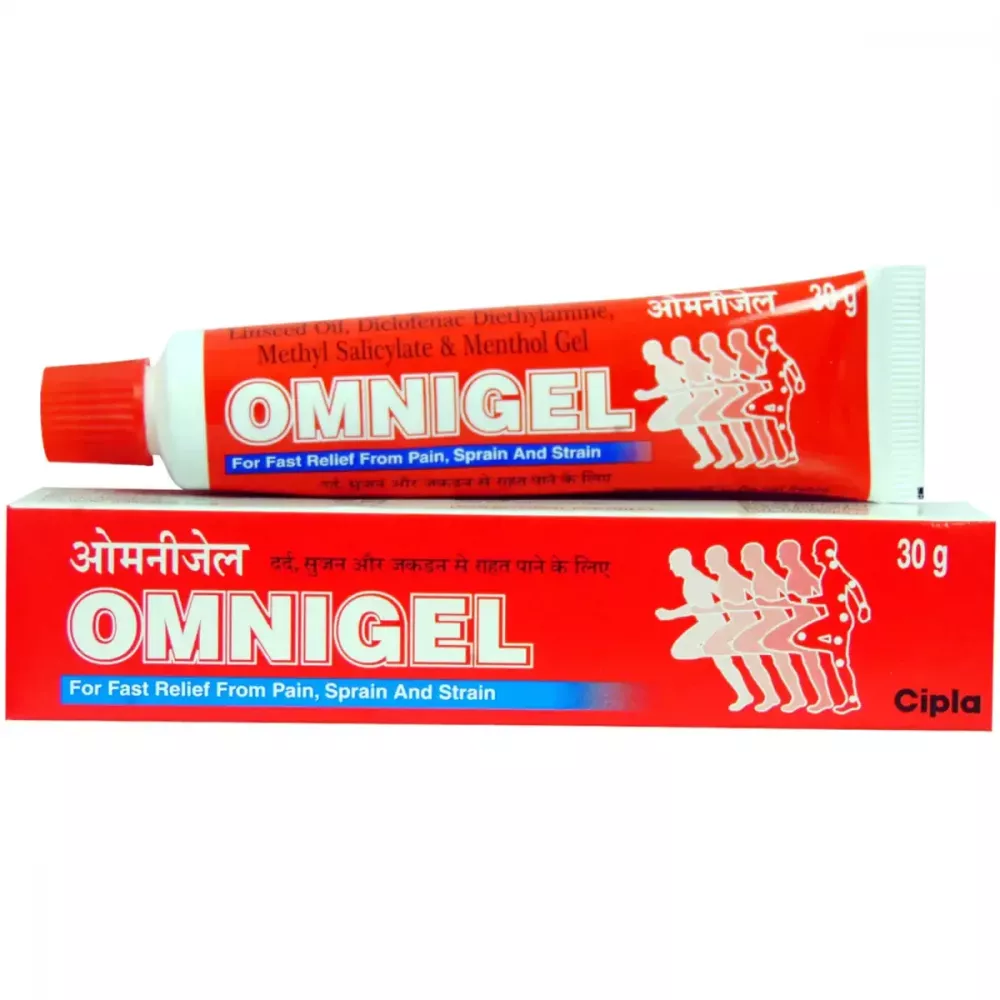 Omnigel is a fast-acting topical pain relief gel used to relieve muscle pain, joint pain, sprains, strains, backache, and sports injuries. It works by reducing inflammation and providing a cooling effect at the site of application, helping ease pain and discomfort quickly without the need for oral medication.