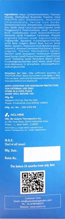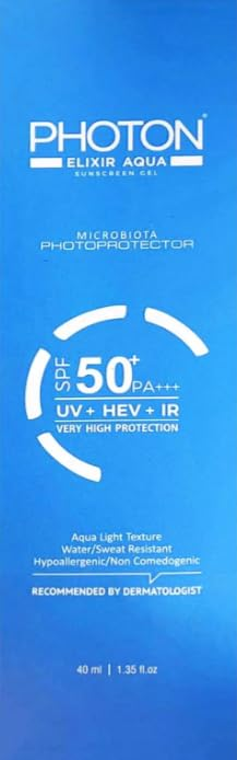 Photon Elixir Sunscreen Gel offers high-performance, broad-spectrum protection with SPF 50+ and PA+++, hydrating and soothing your skin with a non-greasy, fast-absorbing aqua gel texture.